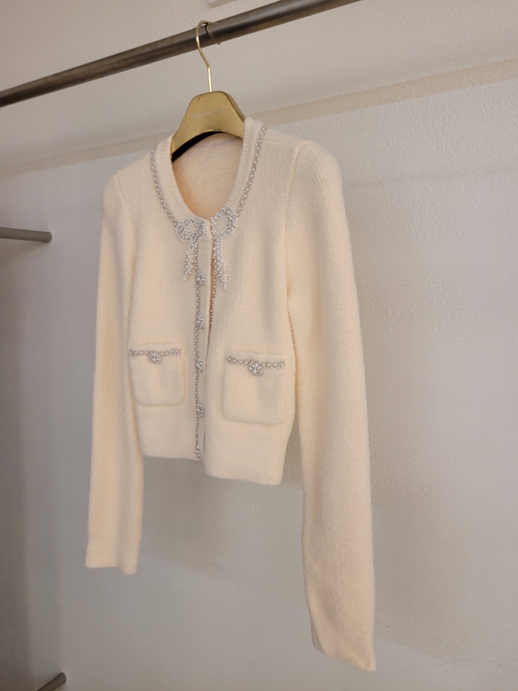 品名:럭셔리 비즈리본니트 가디건 ◎※☞颜色:네이비, 아이보리 ◎※☞尺寸:55, 66, 77 ◎※☞材质:人造纤维 100%