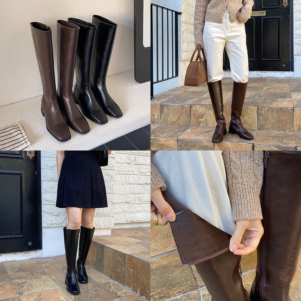 品名:안감퍼 슬림라인 미들힐 롱부츠 4cm, 1028-1fo ◎※☞颜色:브라운, 블랙 ◎※☞尺寸:225, 230, 235, 240, 245, 250, 255 ◎※☞材质:合成皮革 0%