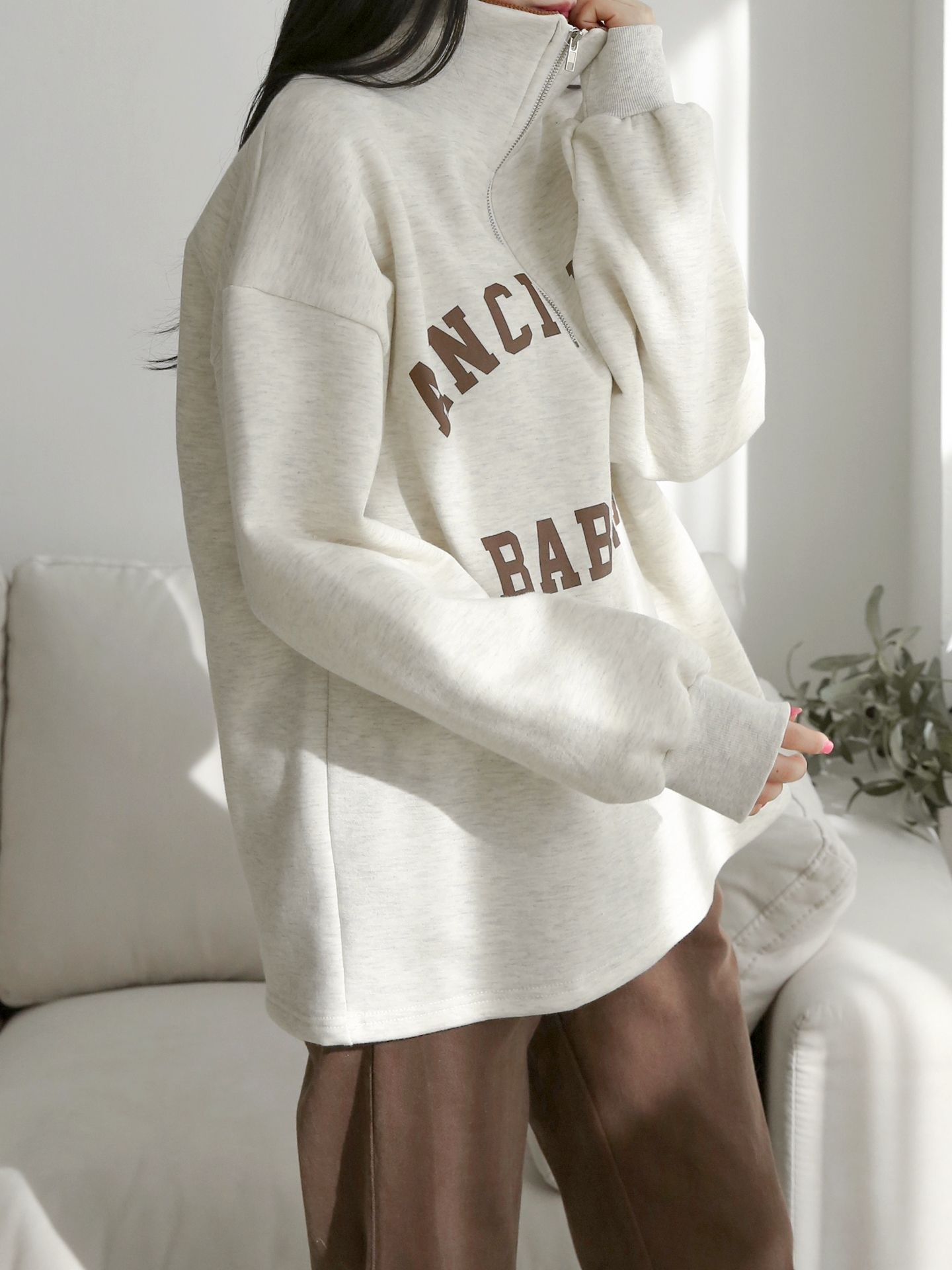 品名:기모바비런MTM ◎※☞颜色:그레이, 블랙, 오트 ◎※☞尺寸:FREE ◎※☞材质:纯棉 50%,聚酯 50% ◎※☞注意事项:只能干洗,只能手洗,不能手洗,机洗,不能使用漂白剂,不能烘干,不能熨烫,不能曲折
