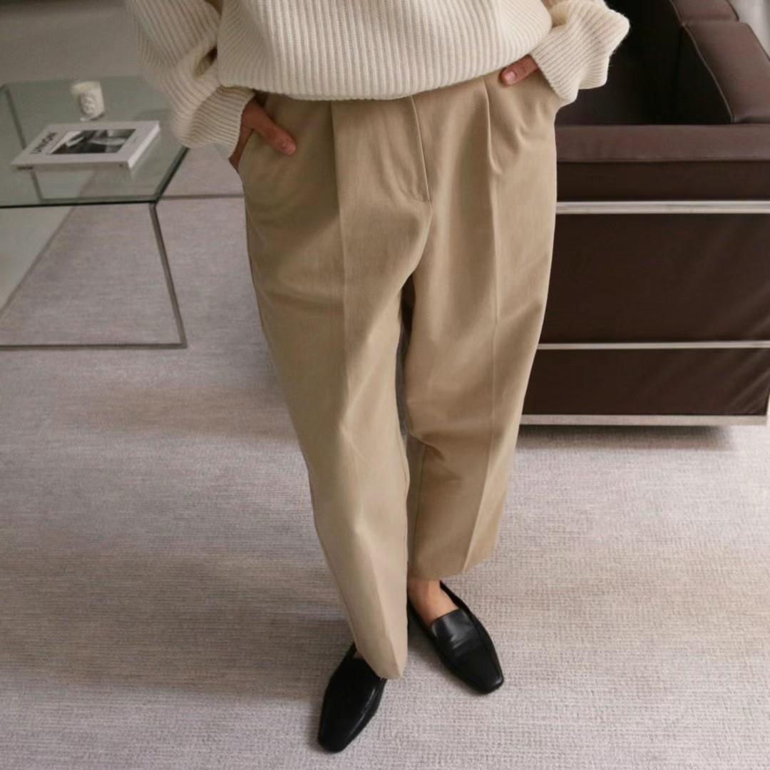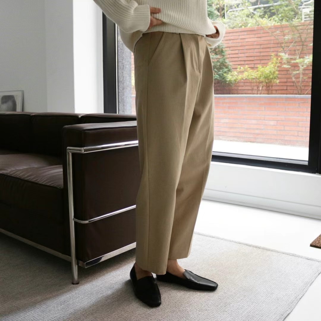 - 코튼 핀턱 치노팬츠 -