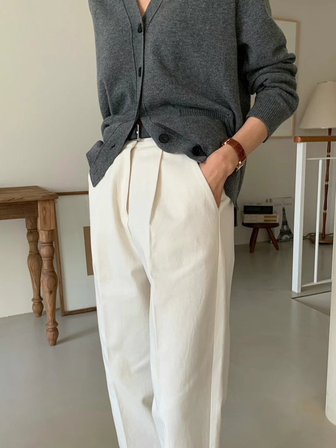 - 코튼 핀턱 치노팬츠 -