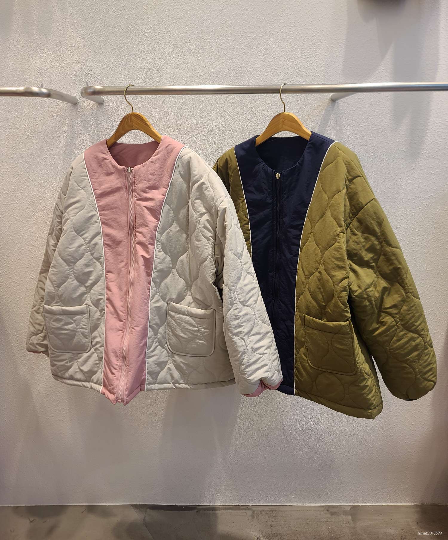 3)안디자인은 퀼팅과본딩 소재감에 차이를 주고 칼라배색과 삥줄 디테일까지 더하여 키치하게 입으실 수 있습니다