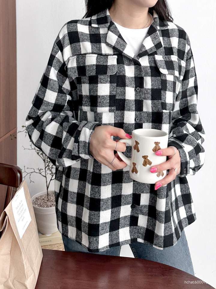 모직 체크 셔츠 남방 ■