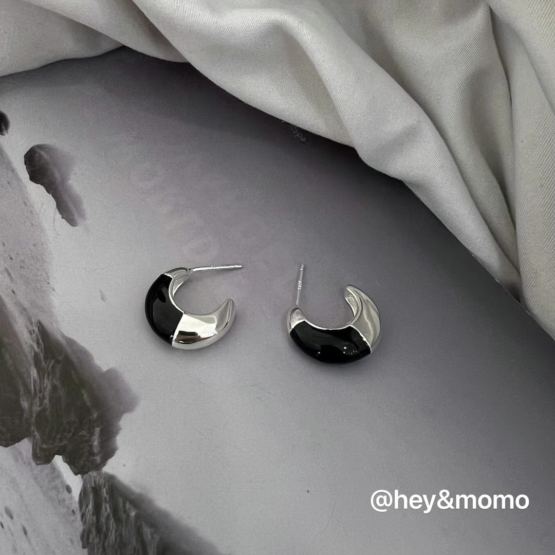 图款 ⚪️925 银 月牙造型 黑釉简约耳钉 20000