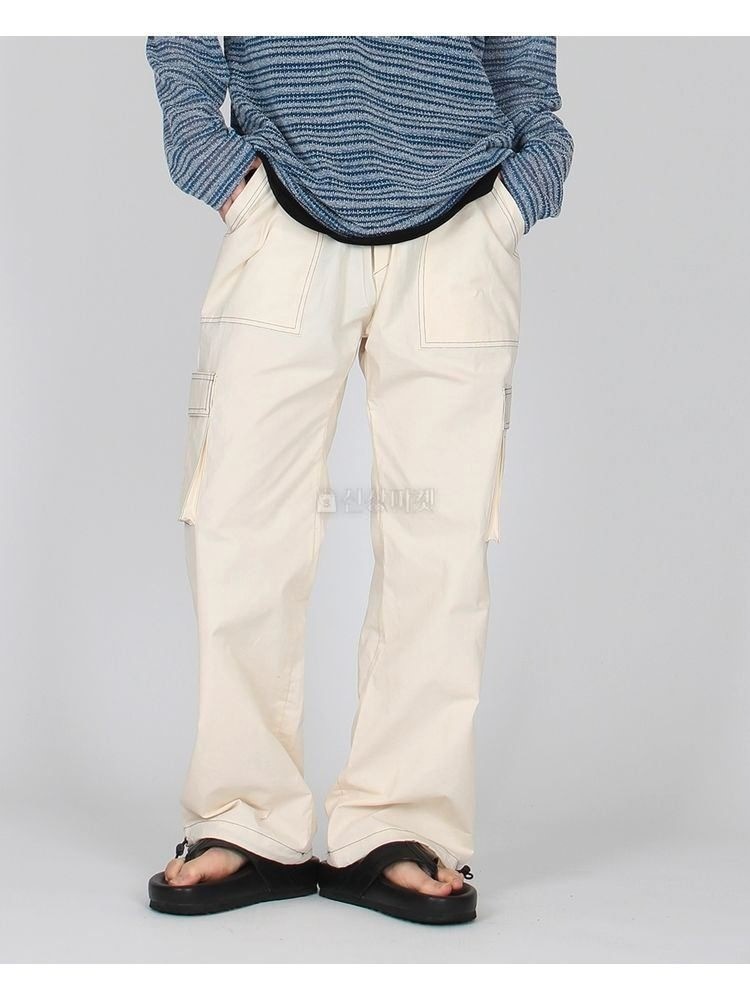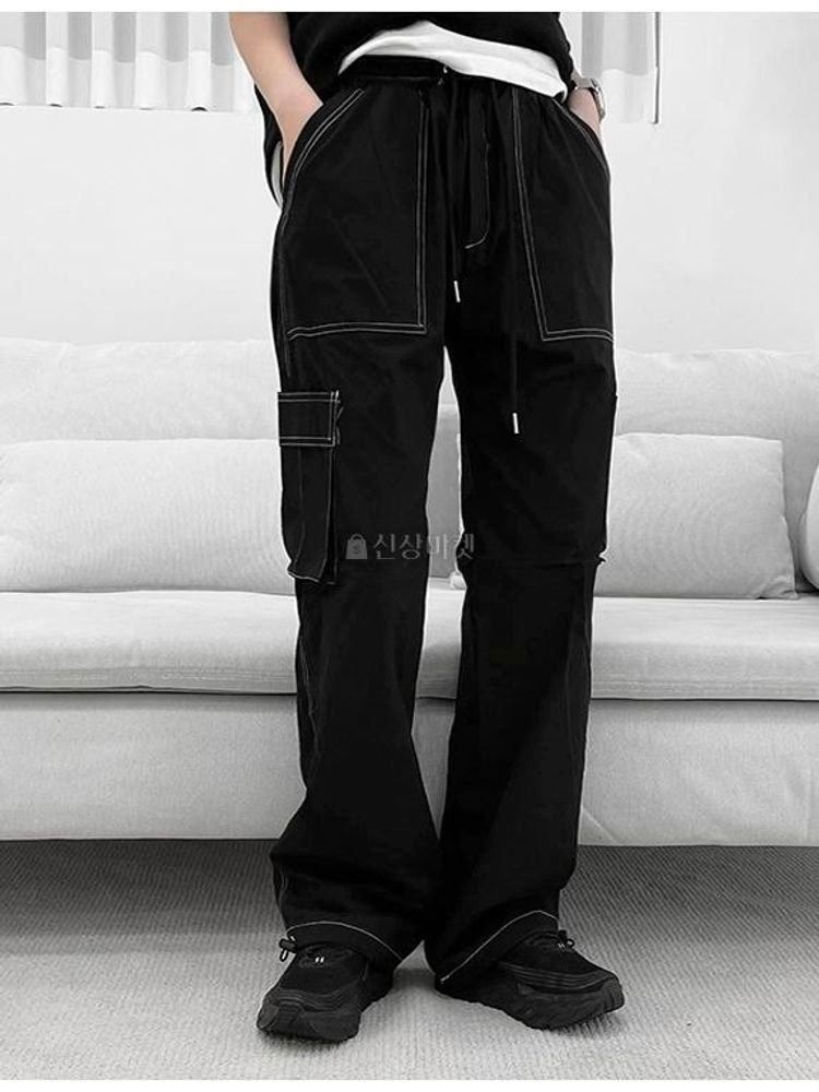 品名:(오늘출고) 폭간배색스티치카고pt 밴딩 끈 조거 스트링.7 ◎※☞颜色:블랙, 아이보리 ◎※☞尺寸:FREE ◎※☞材质:기타 100%