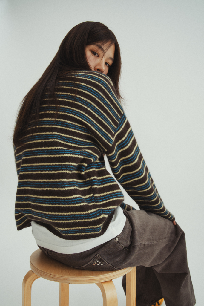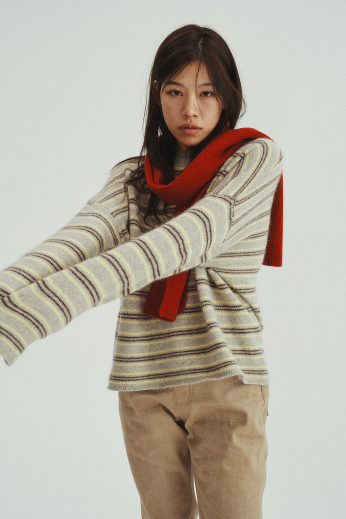 品名:라쿤 스트라이프 니트 #신상#니트 ◎※☞颜色:라임, 베이지, 브라운 ◎※☞尺寸:FREE ◎※☞材质:浣熊毛 40%,羊毛 30%,聚酯 30%