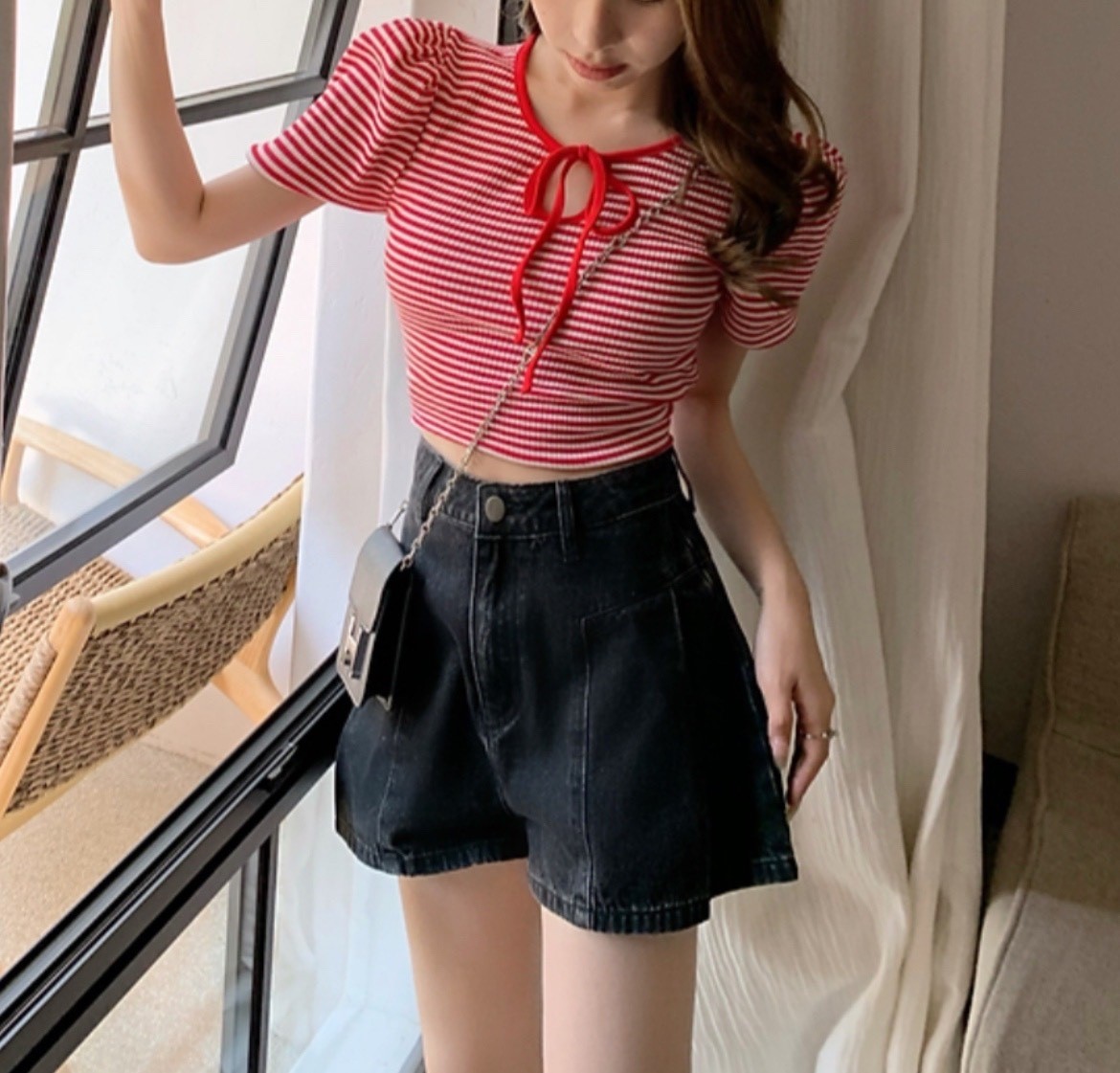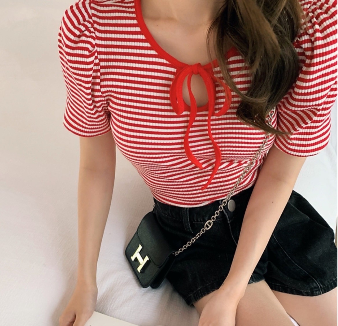 品名:단가라리본니트 #여성상의캐주얼시크로맨틱간절기반팔여릉가을 ◎※☞颜色:빨강 ◎※☞尺寸:FREE ◎※☞材质:聚酯 100%