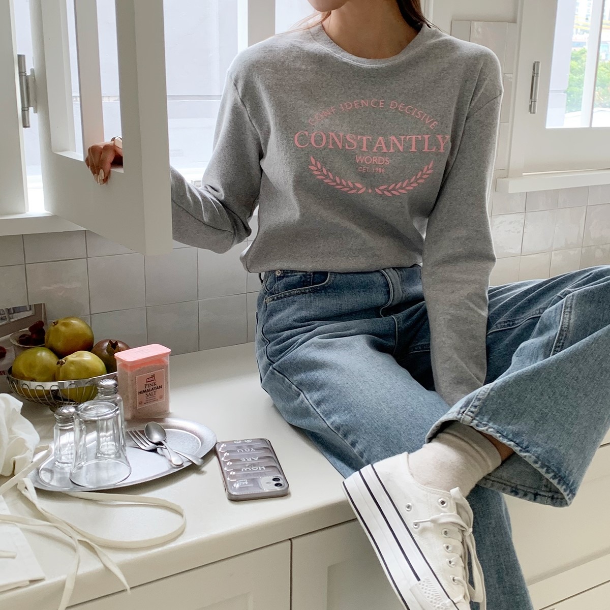 品名:피치1986 ◎※☞颜色:그레이, 먹색, 오트밀 ◎※☞尺寸:FREE ◎※☞材质:스판 5%,纯棉 95% ◎※☞注意事项:只能干洗,只能手洗,不能手洗,机洗,不能使用漂白剂,不能烘干,不能熨烫,不能曲折