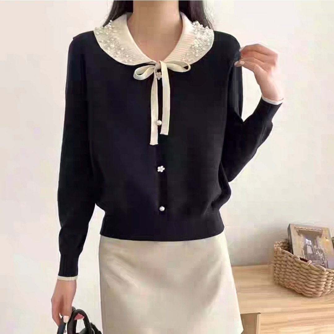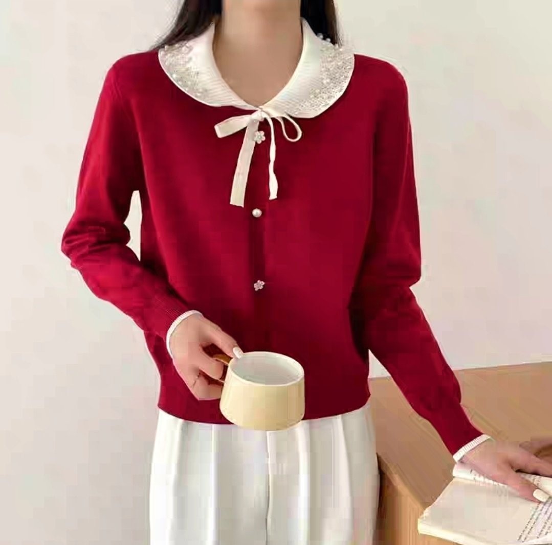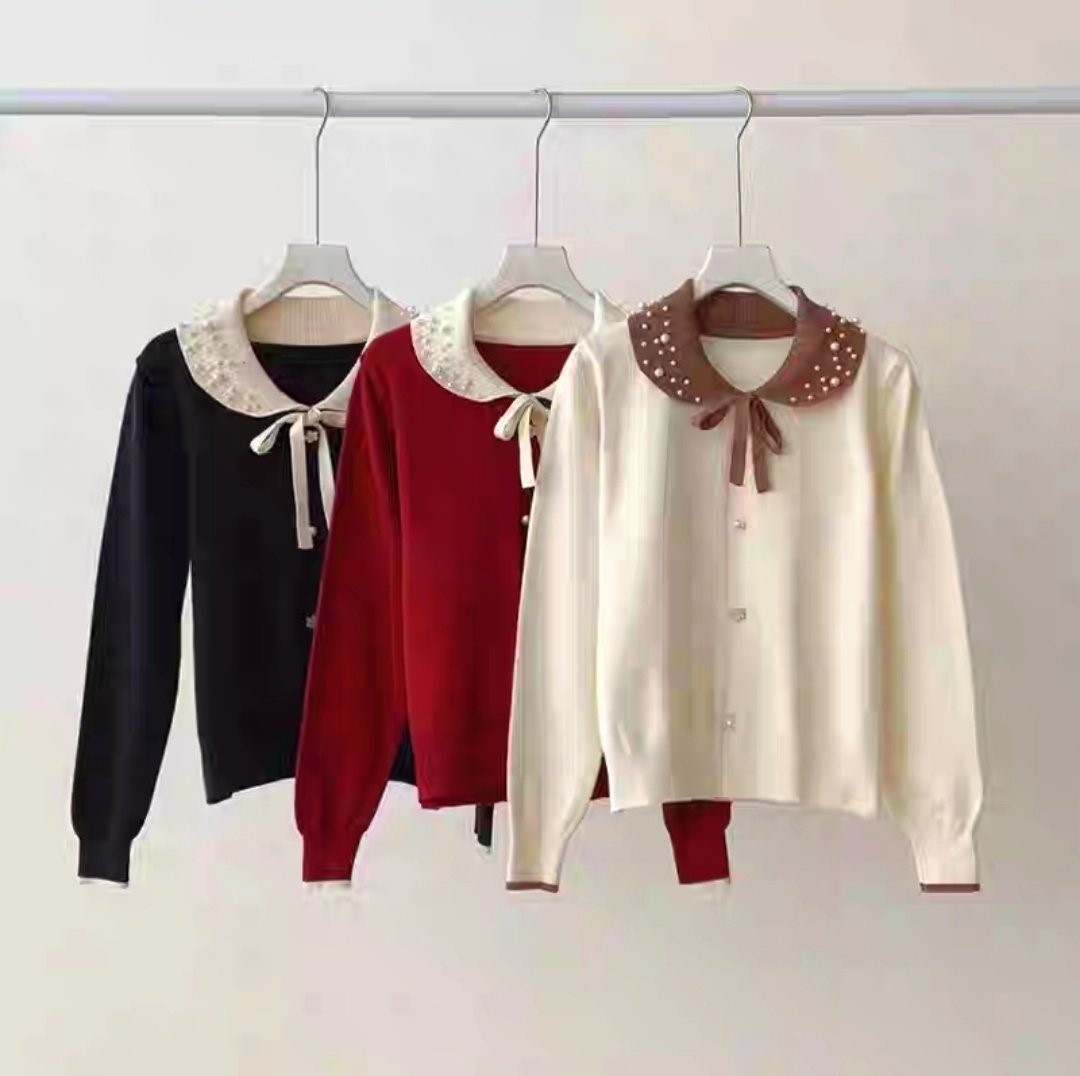 品名:수잔 진주카라니트 ◎※☞颜色:레드, 블랙, 아이보리 ◎※☞尺寸:FREE ◎※☞材质:纯棉 100%