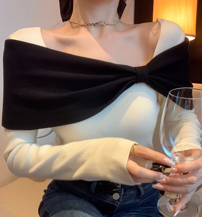 品名:리본겹침디테일니트knit ◎※☞颜色:아이 ◎※☞尺寸:FREE ◎※☞材质:聚酯 100%
