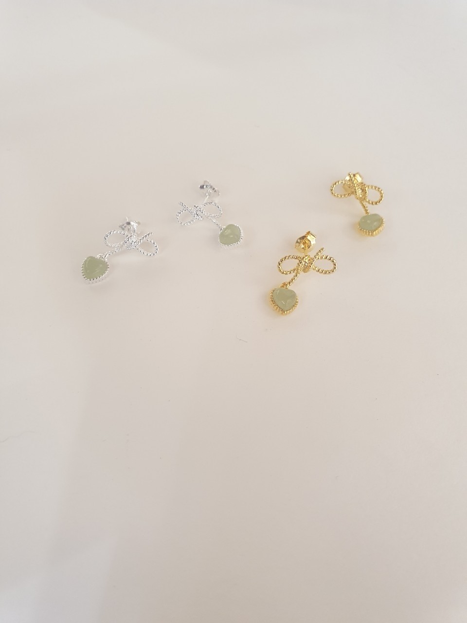 品名:은제품---(골드)리본 하트원석 딸랑이귀걸이 ◎※☞颜色:골드 ◎※☞尺寸:FREE ◎※☞材质:은 0%