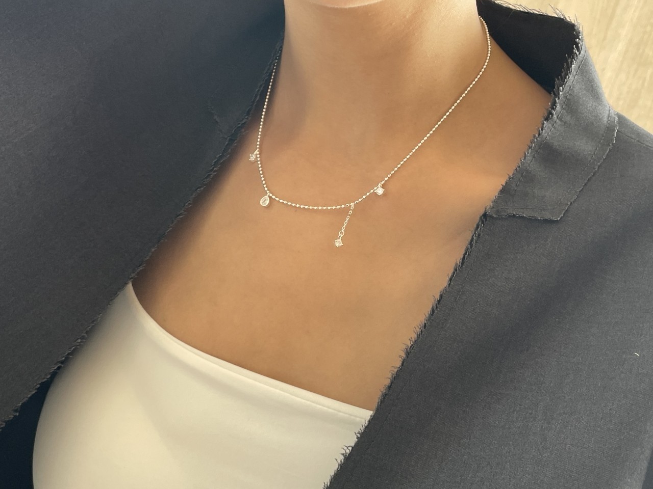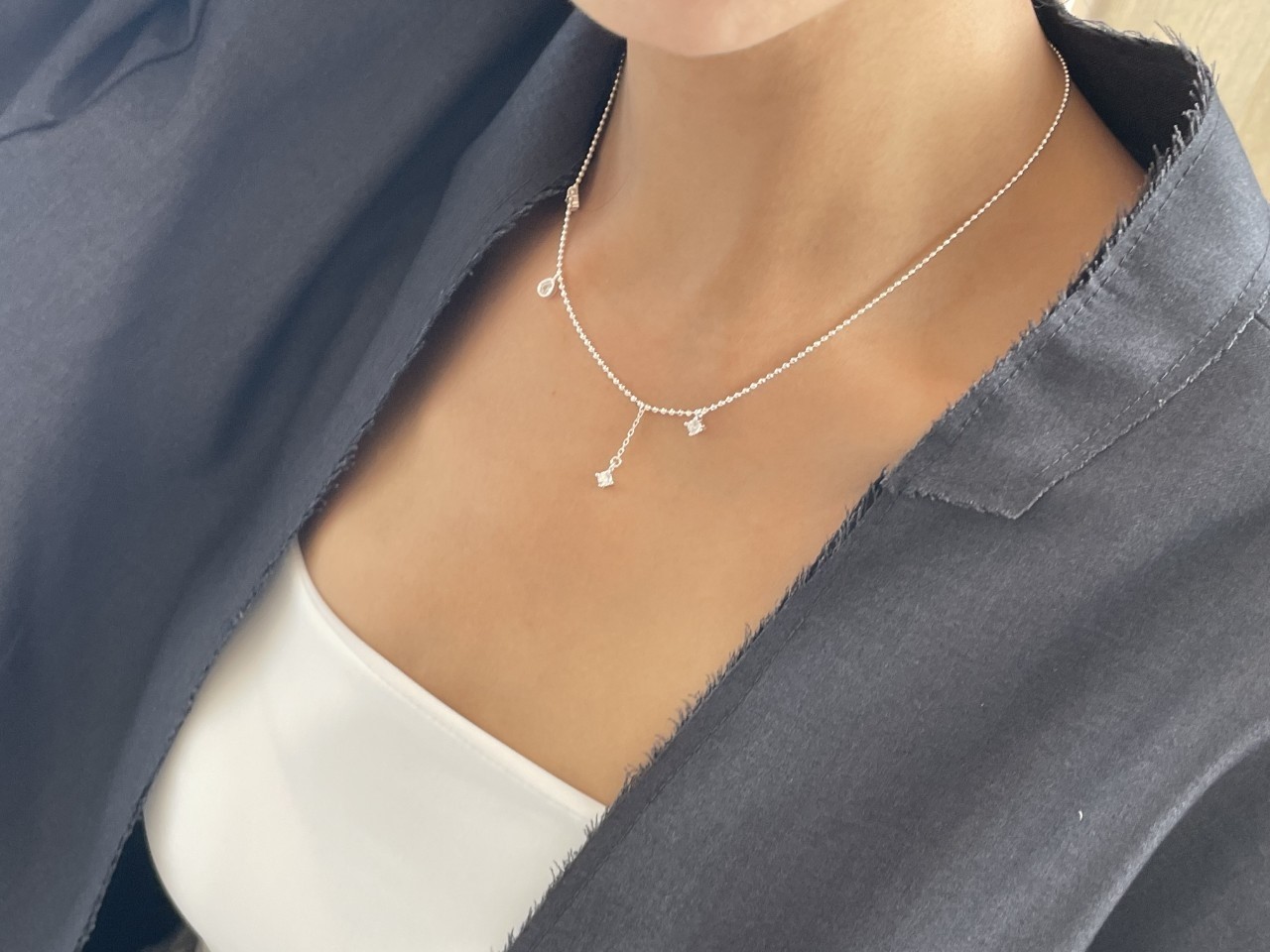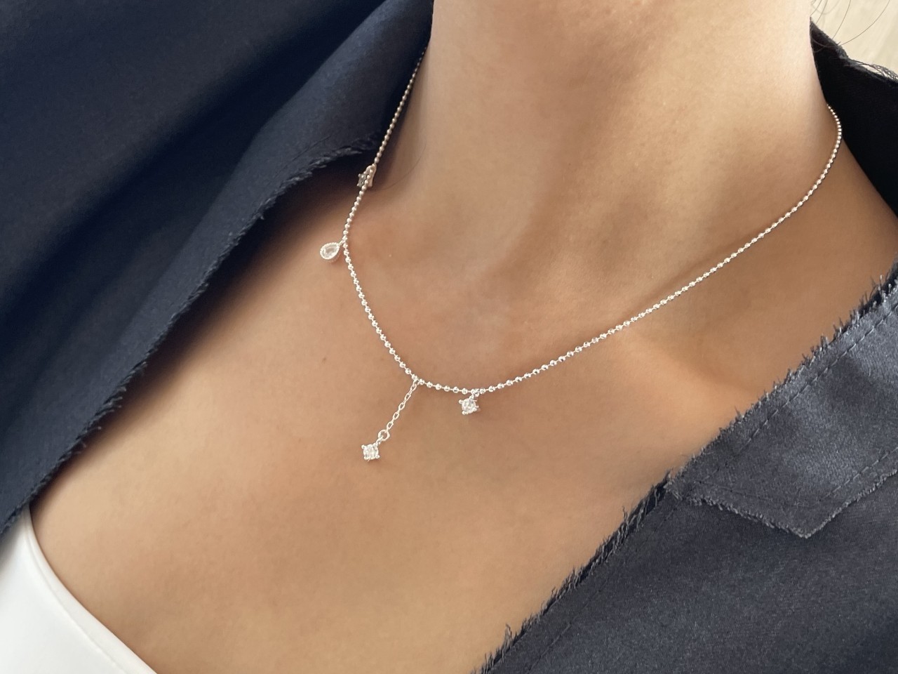 品名:은제품---(실버)네개 큐빅 은볼줄목걸이 ◎※☞颜色:실버 ◎※☞尺寸:41CM+5CM ◎※☞材质:은 0%