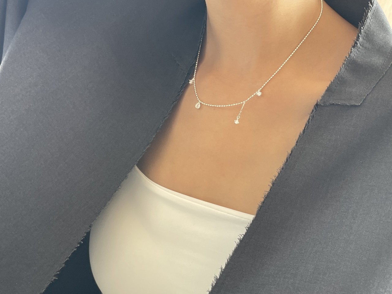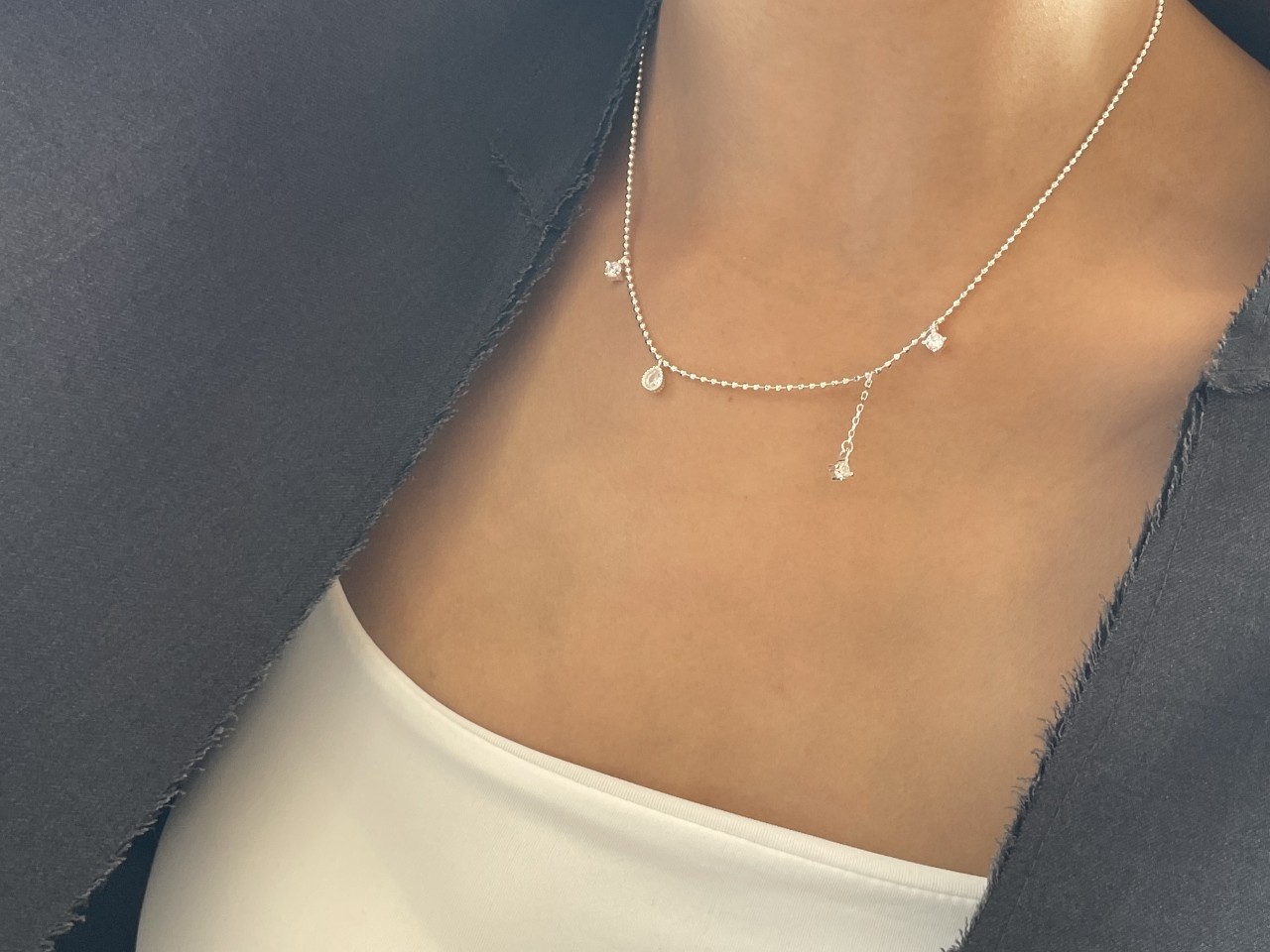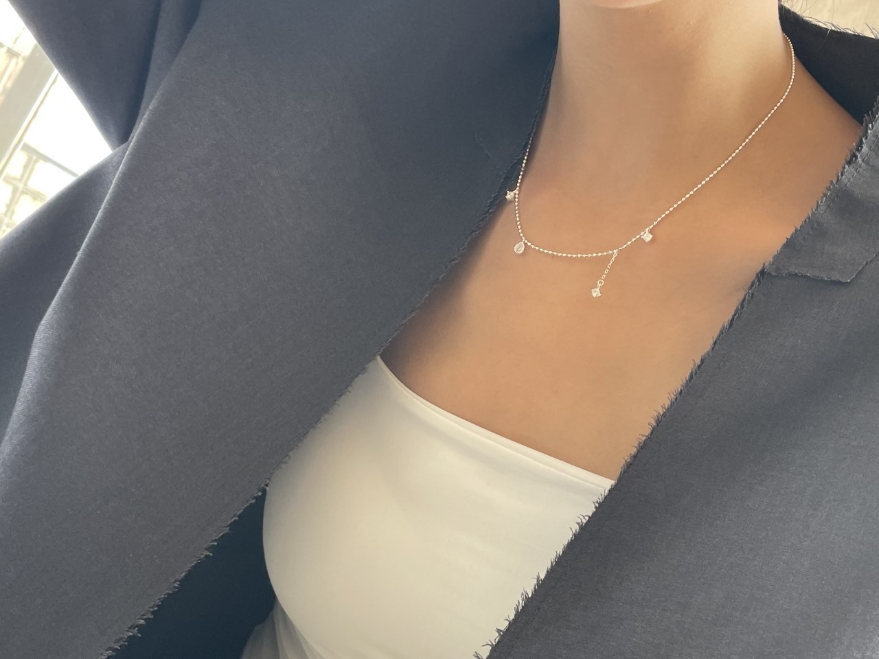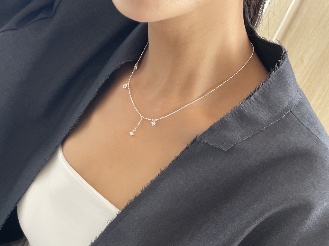 品名:은제품---(실버)네개 큐빅 은볼줄목걸이 ◎※☞颜色:실버 ◎※☞尺寸:41CM+5CM ◎※☞材质:은 0%