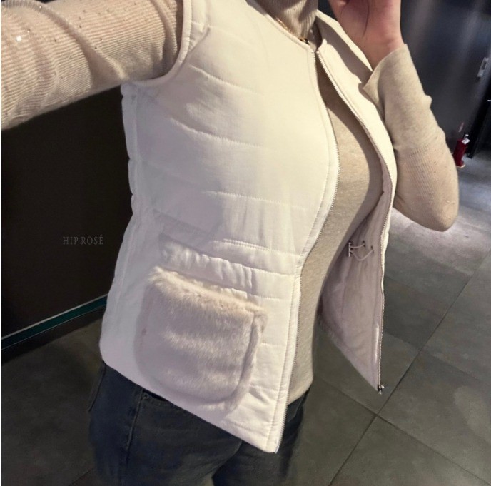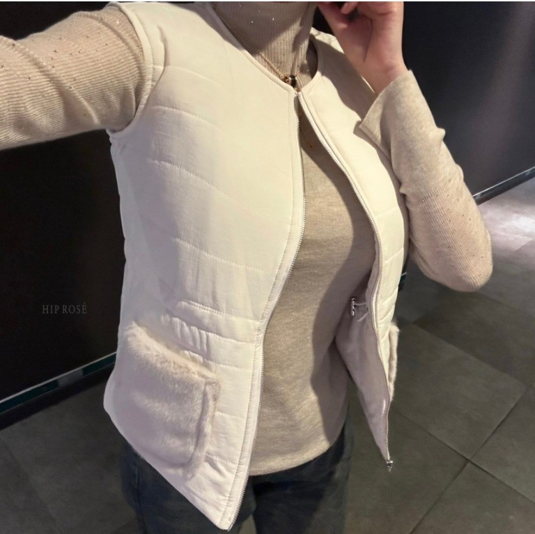 品名:포켓퍼패딩조끼 ◎※☞颜色:블랙, 크림 ◎※☞尺寸:FREE ◎※☞材质:尼龙 100%