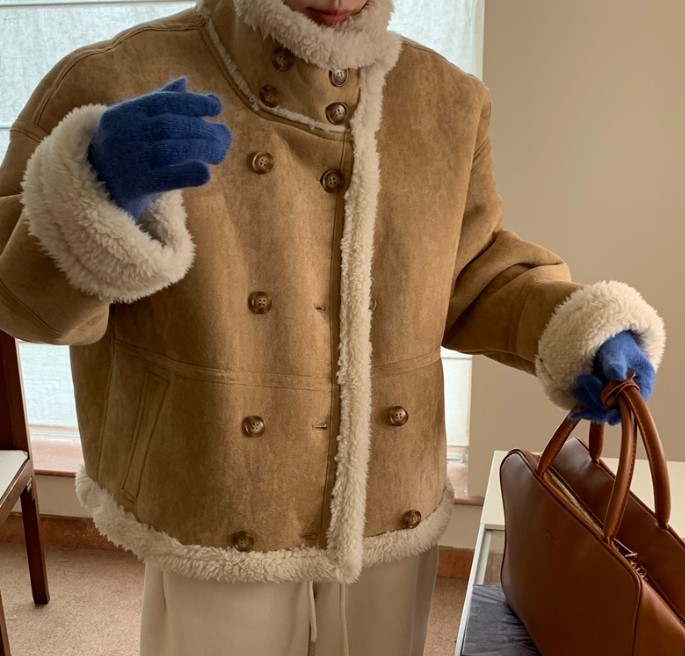 品名:더블단추무스탕jk ◎※☞颜色:베이지, 브라운 ◎※☞尺寸:FREE ◎※☞材质:合成皮革 100%