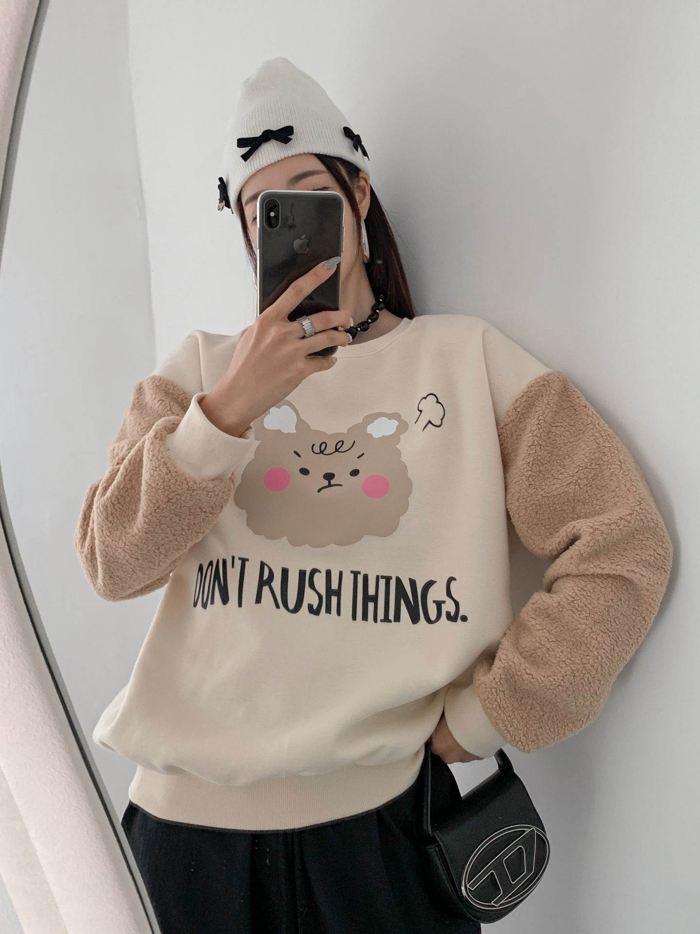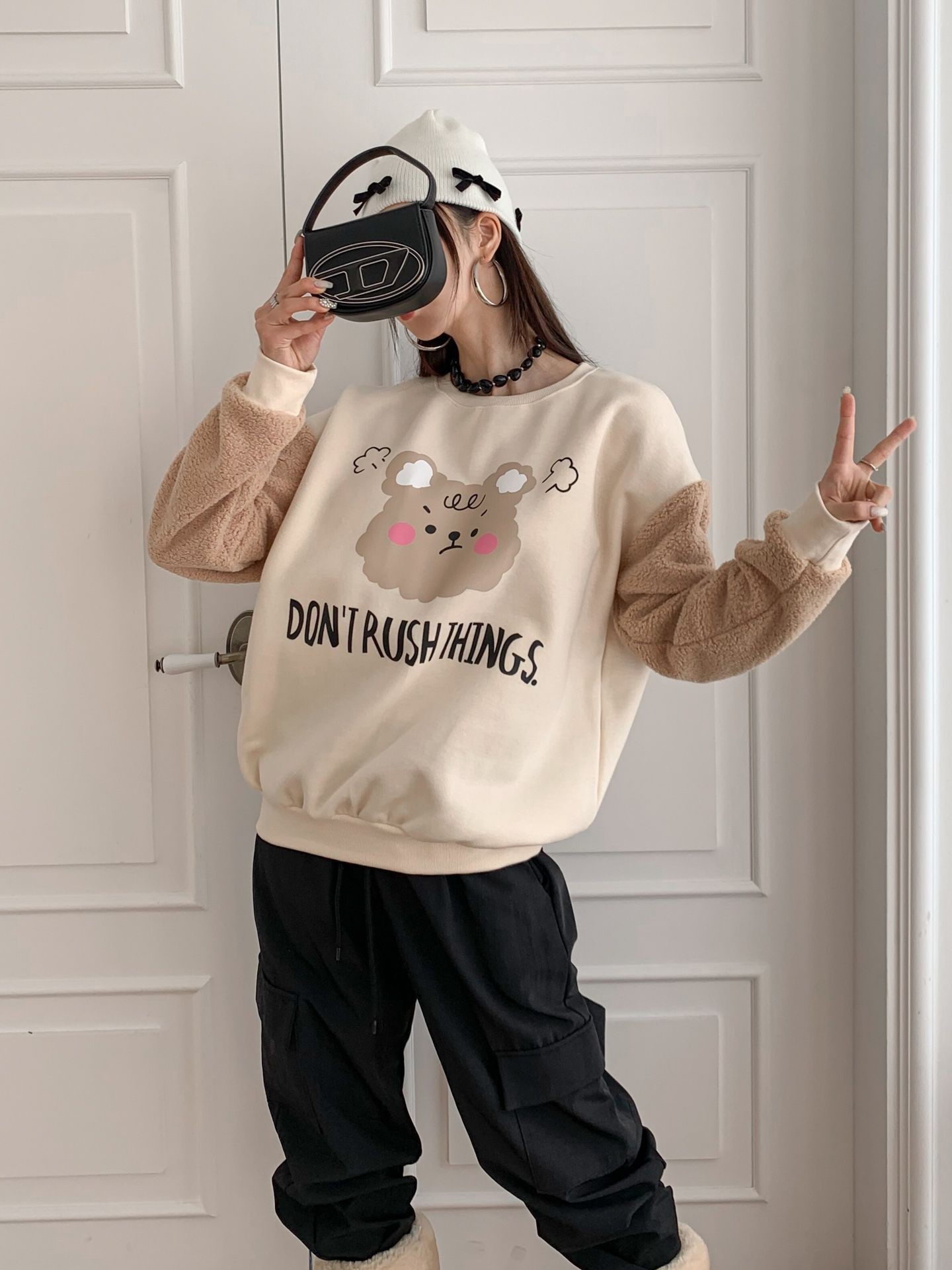 品名:푸들곰 맨투맨 ◎※☞颜色:블랙, 크림 ◎※☞尺寸:FREE ◎※☞材质:纯棉 100%