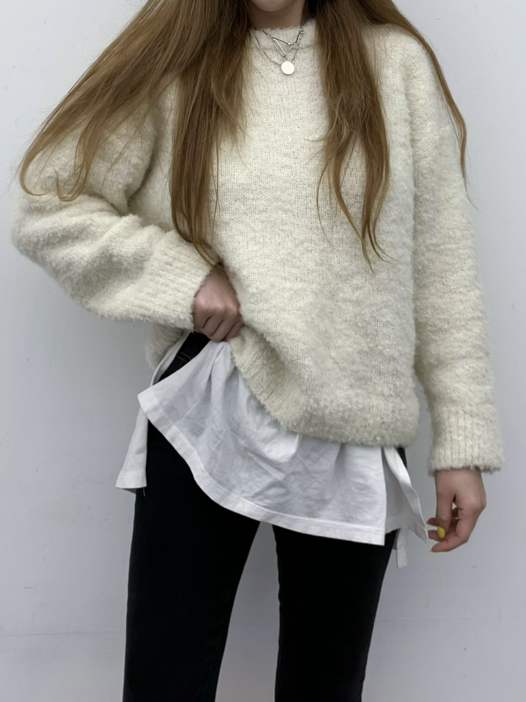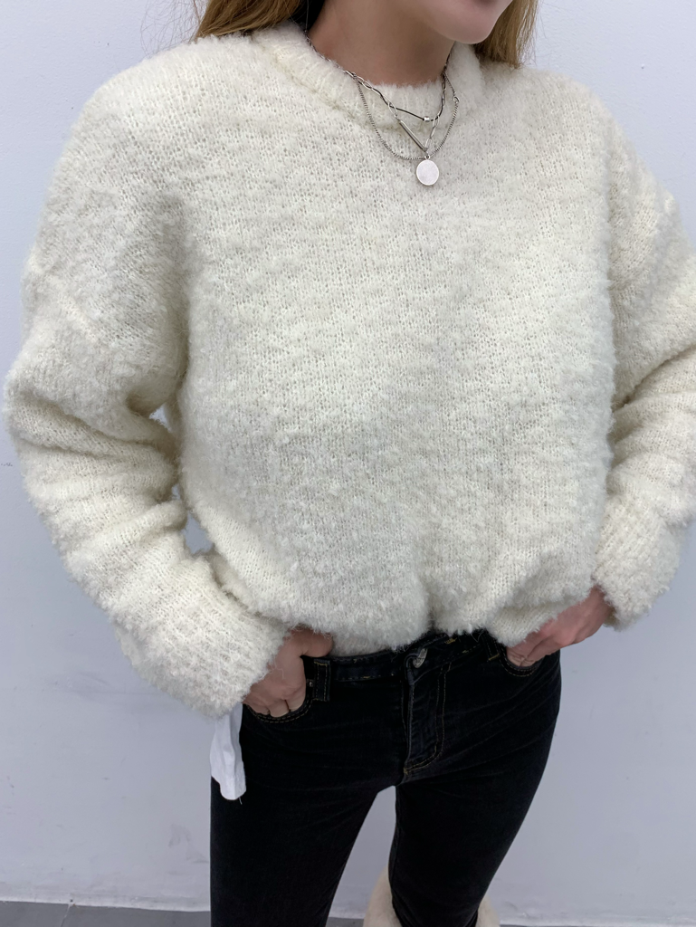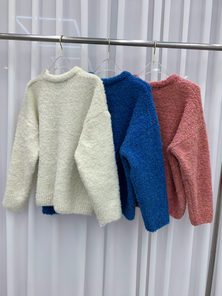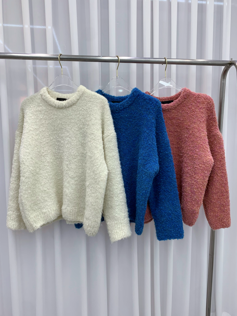 品名:뽀숑울니트 #오버핏니트 #라운드니트 #뽀글이니트 ◎※☞颜色:블루, 아이보리, 핑크 ◎※☞尺寸:FREE ◎※☞材质:羊毛 20%,聚酯 23%,腈纶 52%,스판 5%