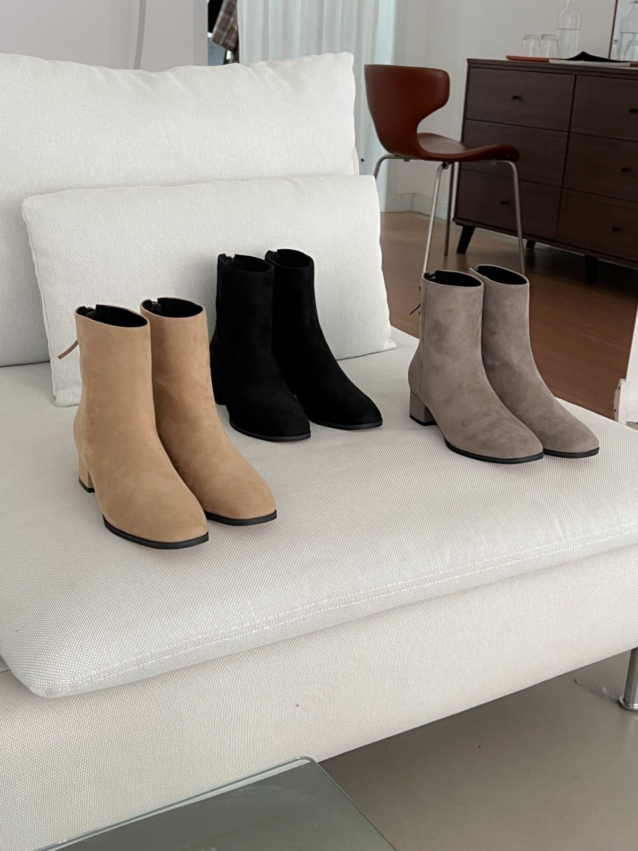 品名:뒷지퍼 세무 앵글 ◎※☞颜色:그레이, 베이지, 블랙 ◎※☞尺寸:230, 235, 240, 245, 250 ◎※☞材质:合成皮革 0%