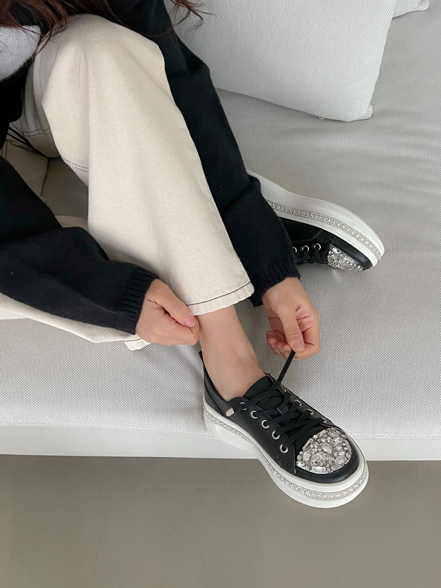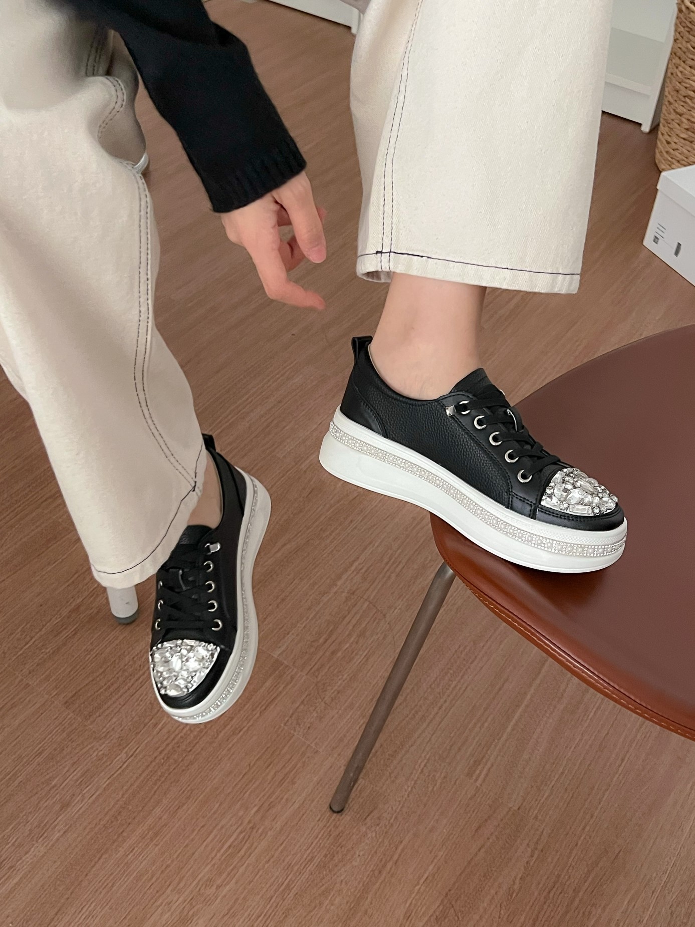 品名:천연소가죽 럭셔리 라운드 큐빅 창 5목 밴드 스니커즈 자8073 ◎※☞颜色:베이지, 블랙 ◎※☞尺寸:230, 235, 240, 245, 250 ◎※☞材质:天然皮革 100% ◎※☞注意事项:只能干洗,只能手洗,不能手洗,机洗,不能使用漂白剂,不能烘干,不能熨烫,不能曲折