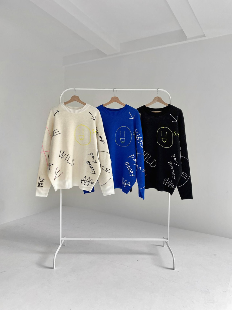 品名:낙서 핸드페인팅 자가드 니트 ◎※☞颜色:블랙, 아이보리, 코발트 ◎※☞尺寸:FREE ◎※☞材质:腈纶 100% ◎※☞注意事项:只能干洗,只能手洗,不能手洗,机洗,不能使用漂白剂,不能烘干,不能熨烫,不能曲折