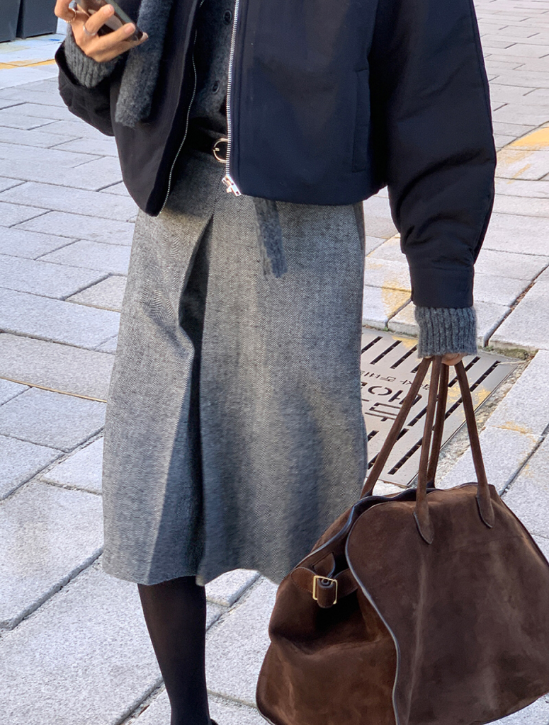 品名:헤링본 원핀턱 울스커트 ,벨트 set ◎※☞颜色:브라운, 블랙 ◎※☞尺寸:FREE ◎※☞材质:聚酯 70%,羊毛 30%