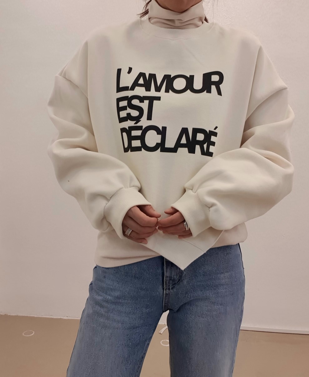 品名:언발 영문 맨투맨# 겨울신상 ◎※☞颜色:겨자, 네이비, 아이보리 ◎※☞尺寸:FREE ◎※☞材质:纯棉 100%