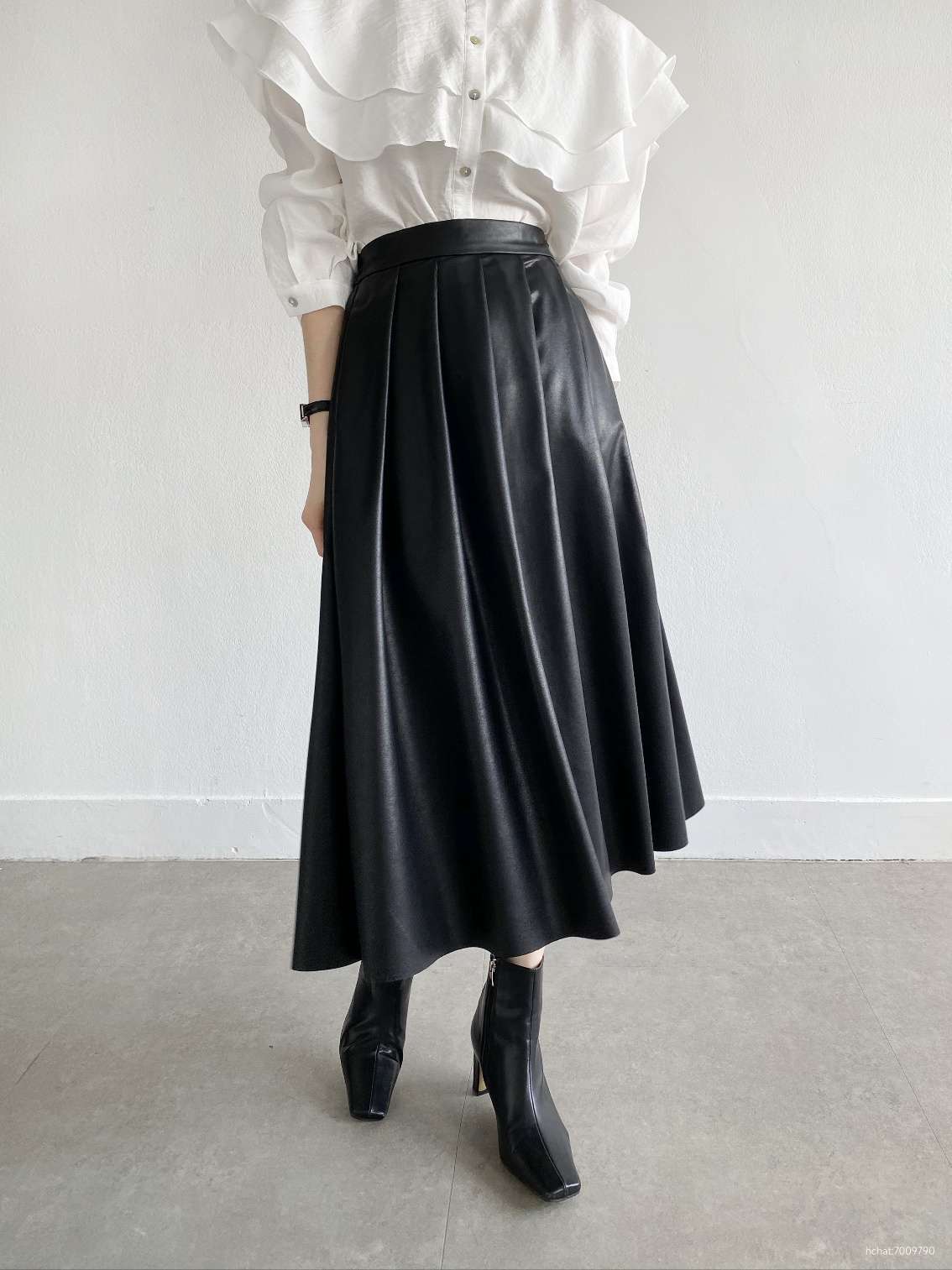 레더주름스커트1