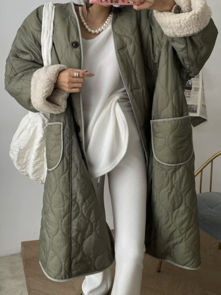 品名:루즈양면양털패딩 ◎※☞颜色:블랙, 카키 ◎※☞尺寸:FREE ◎※☞材质:纯棉 70%,聚酯 30%