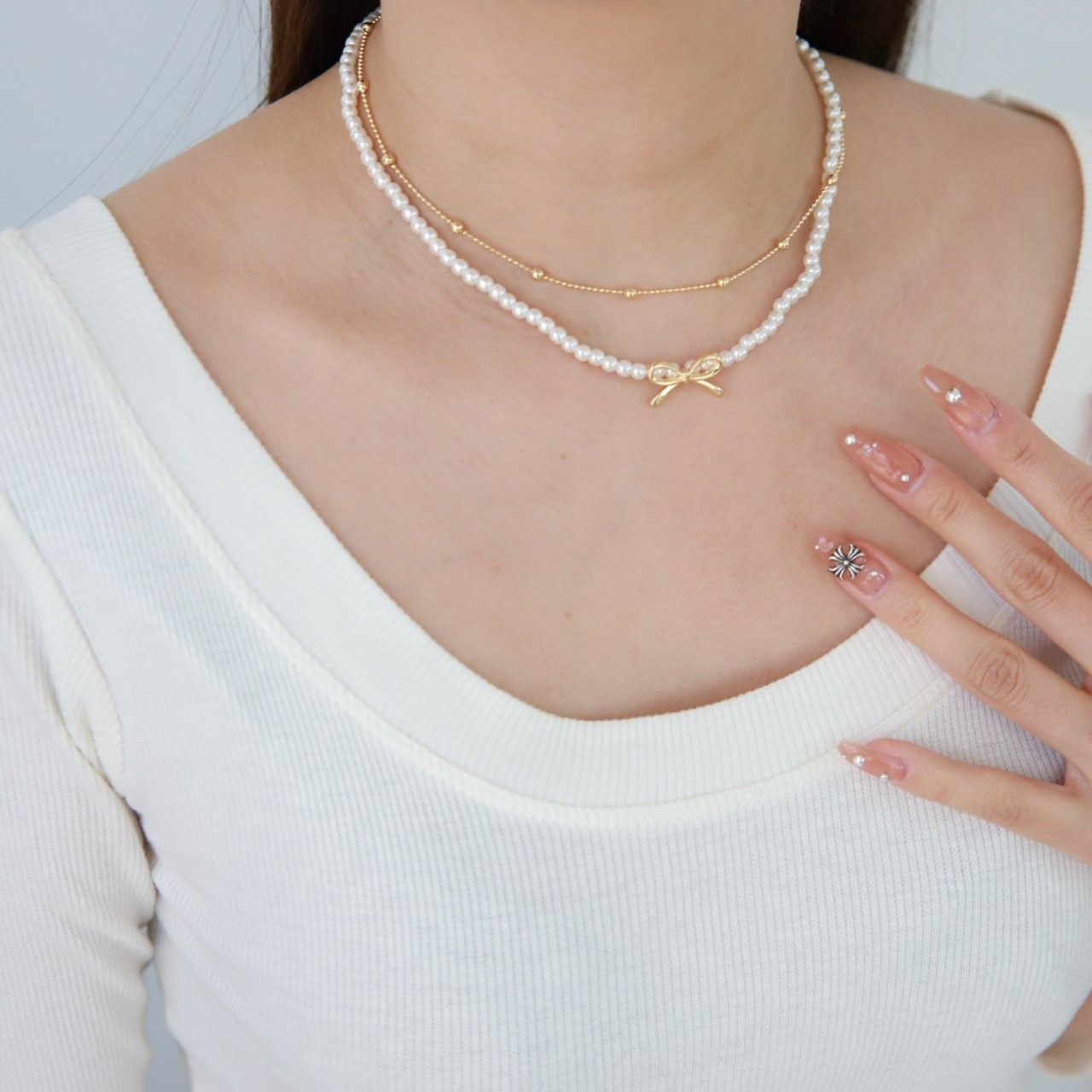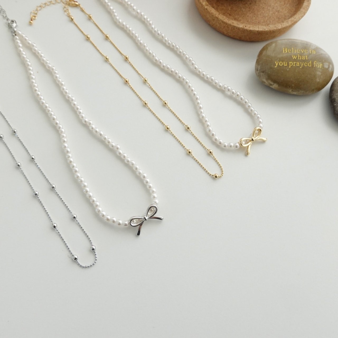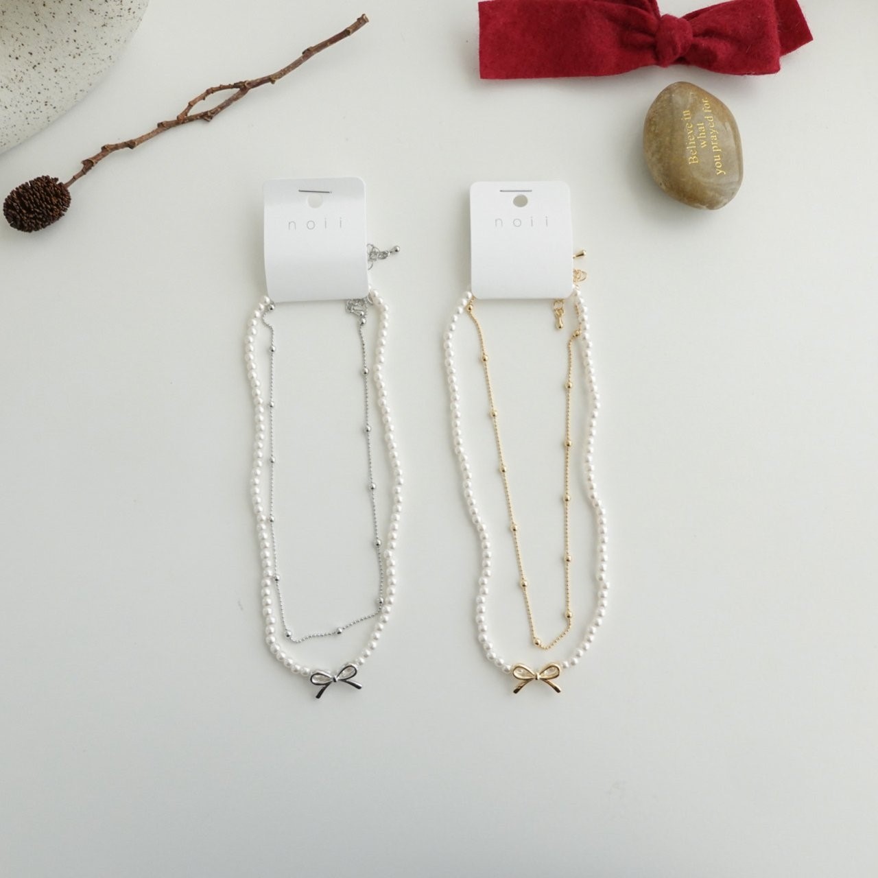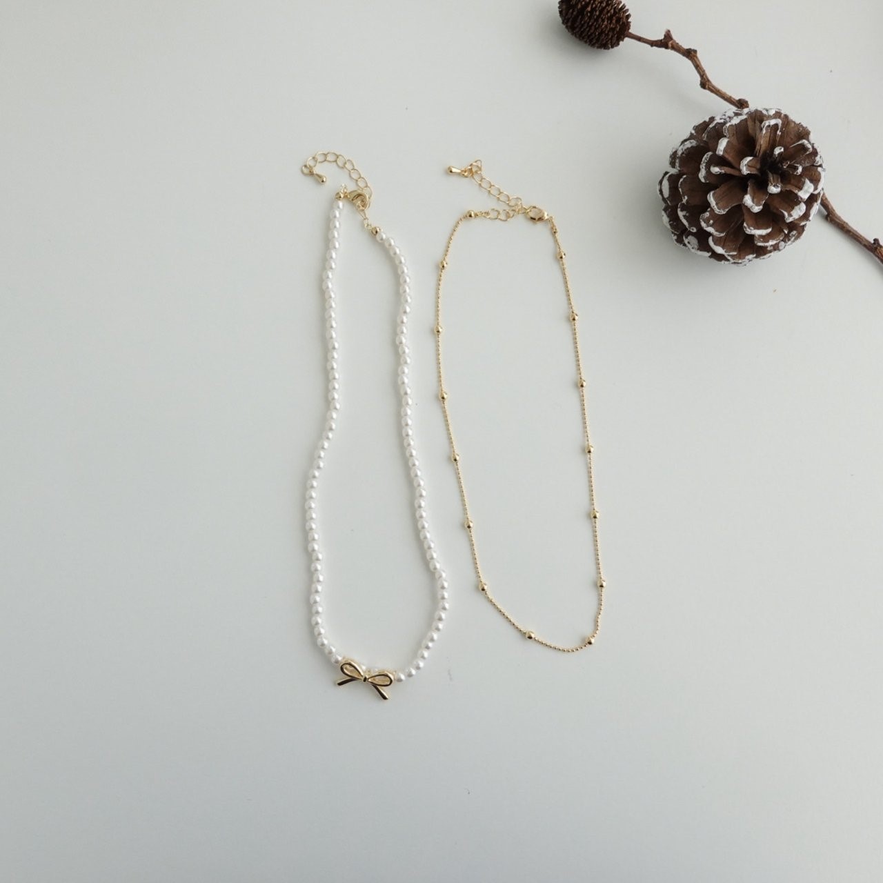 品名:N3315 모아 리본 진주 목걸이 세트 ◎※☞颜色:골드, 실버 ◎※☞尺寸:FREE ◎※☞材质:镀金 0%