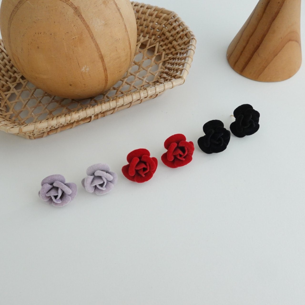 品名:E3356 로즈벨벳 귀걸이 ◎※☞颜色:레드, 블랙, 퍼플 ◎※☞尺寸:FREE ◎※☞材质:镀金 0%