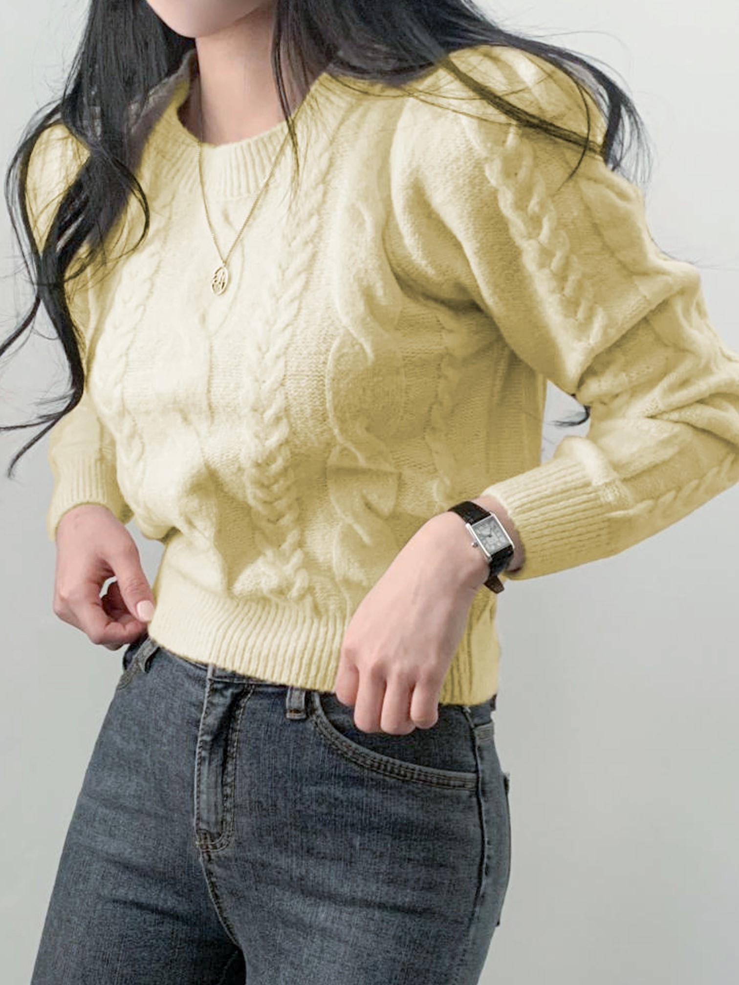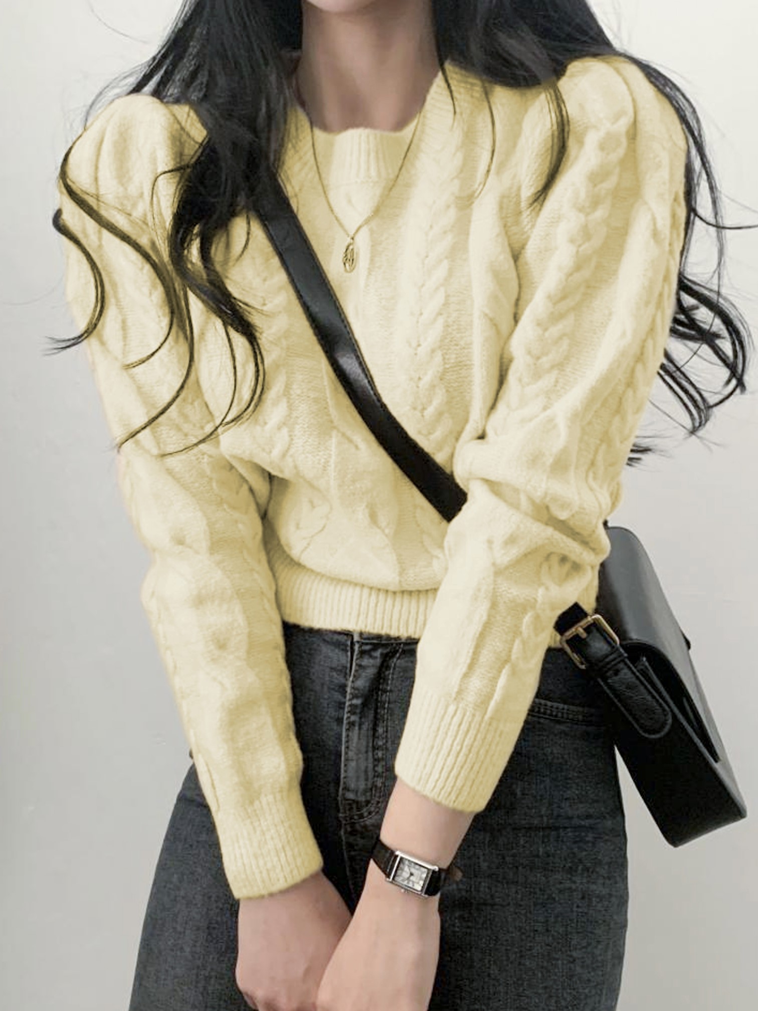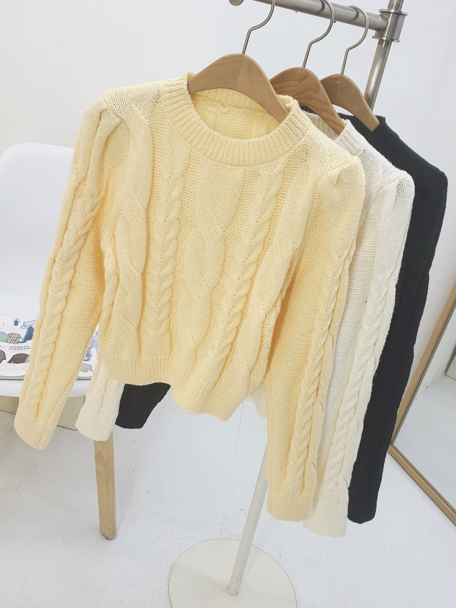 品名:(신상)2291#볼륨어께니트티 ◎※☞颜色:노랑, 블랙, 아이보리 ◎※☞尺寸:FREE ◎※☞材质:AW아크릴울 100% ◎※☞注意事项:只能干洗,只能手洗,不能手洗,机洗,不能使用漂白剂,不能烘干,不能熨烫,不能曲折