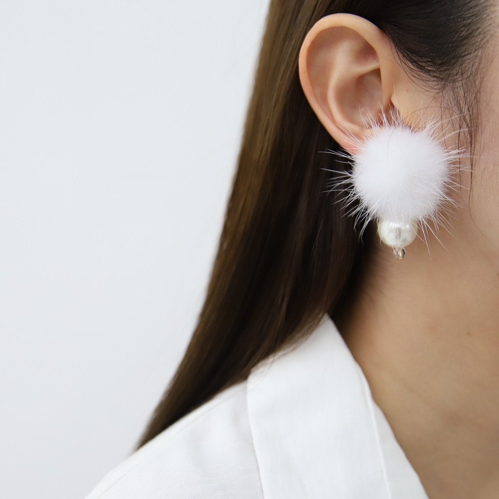 品名:E3357 에코 밍크퍼 진주 귀걸이 ◎※☞颜色:블랙, 핑크, 화이트 ◎※☞尺寸:FREE ◎※☞材质:镀金 0%