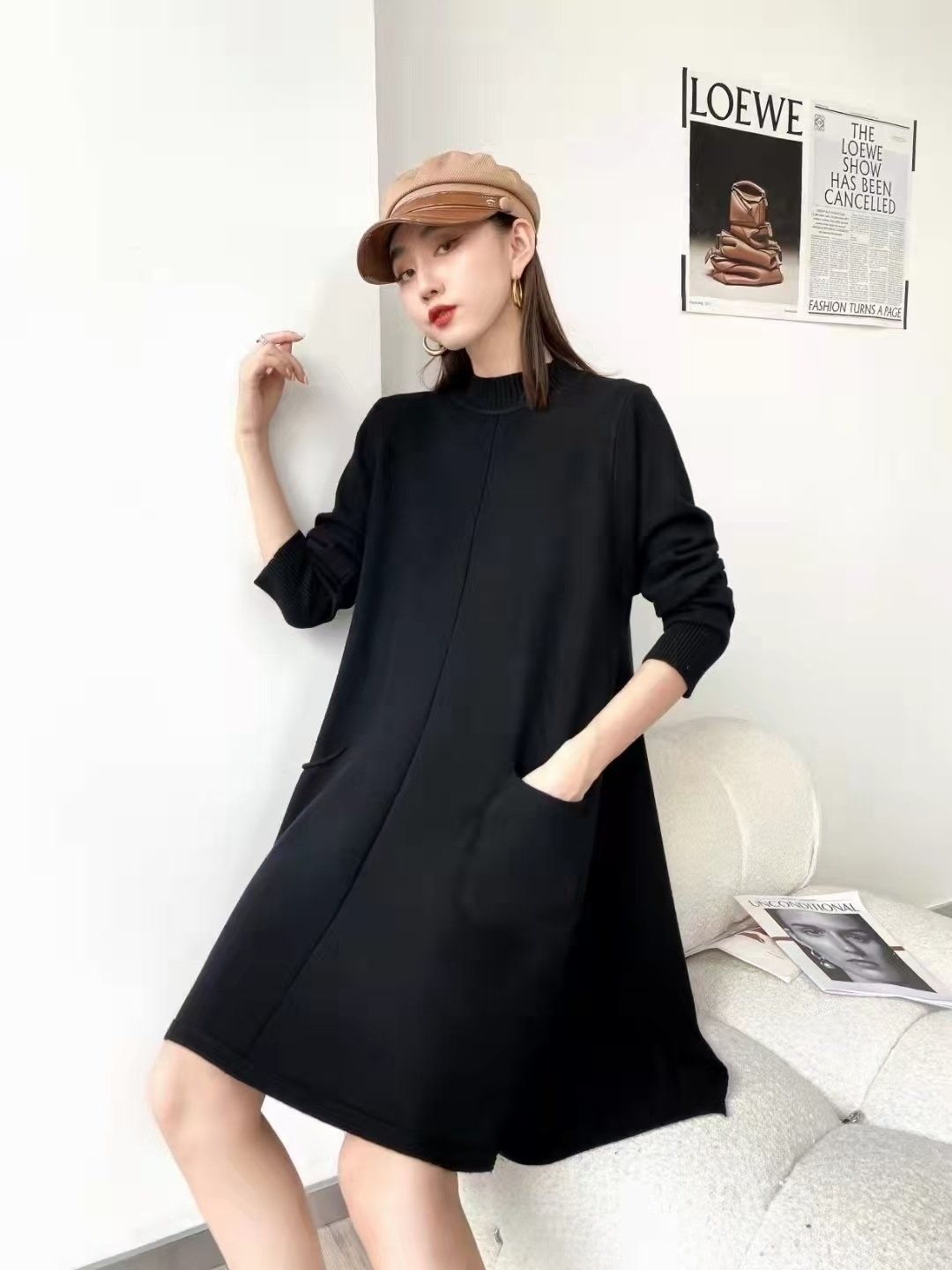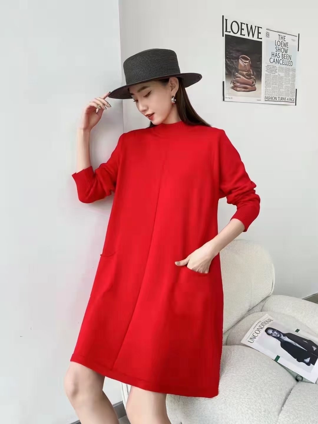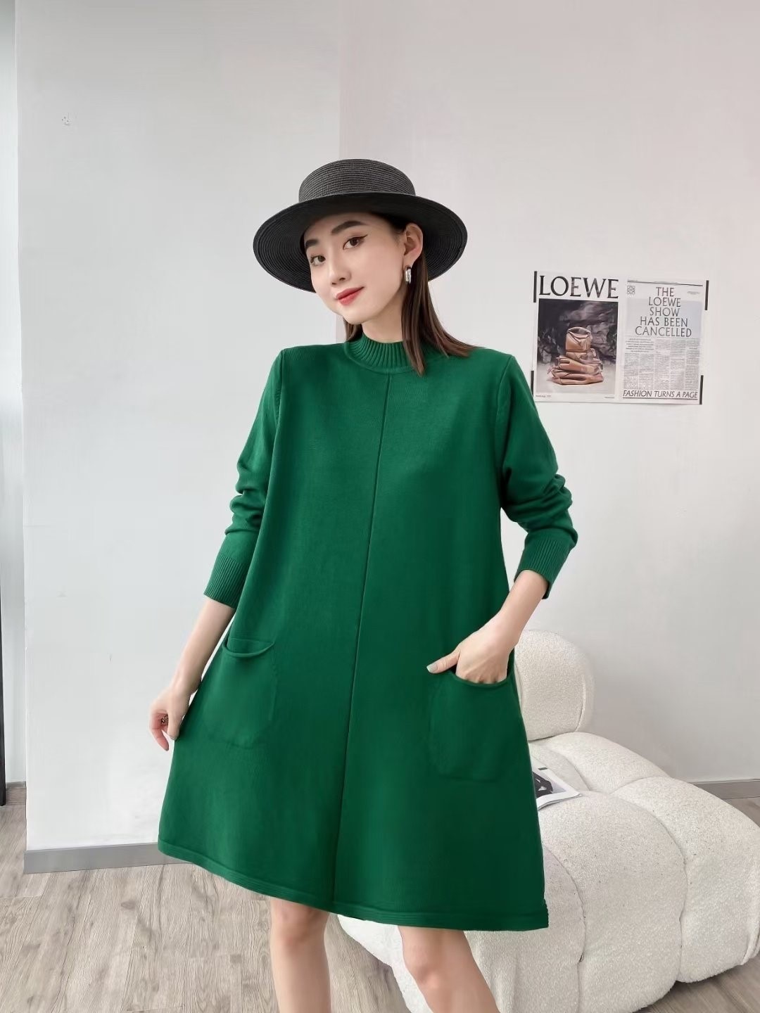 品名:반목 투주머니 니트 원피스 ◎※☞颜色:검정, 녹색, 빨강 ◎※☞尺寸:FREE ◎※☞材质:니트 100%