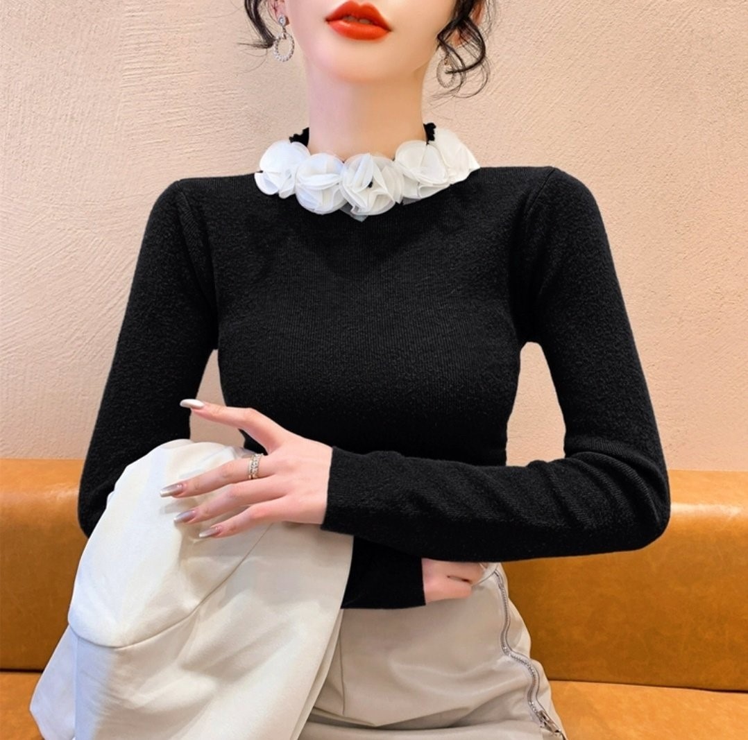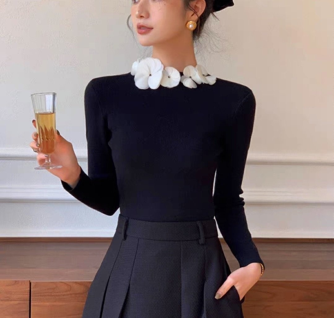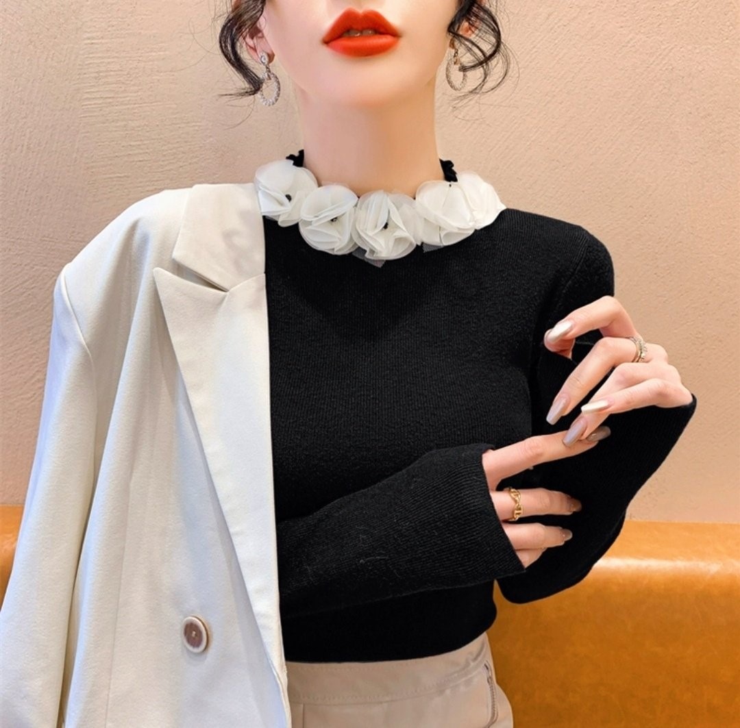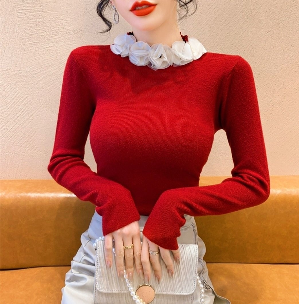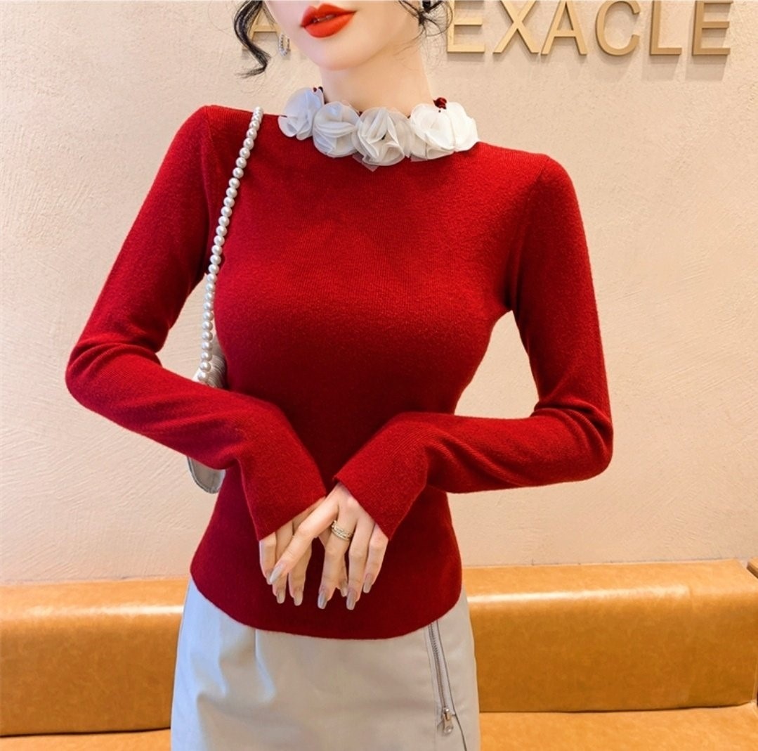 品名:쉬폰로즈넥 슬림니트 ◎※☞颜色:레드, 블랙, 아이보리 ◎※☞尺寸:FREE ◎※☞材质:纯棉 100%