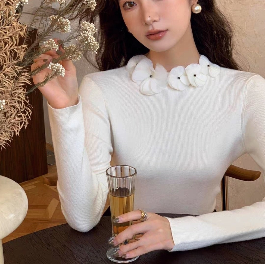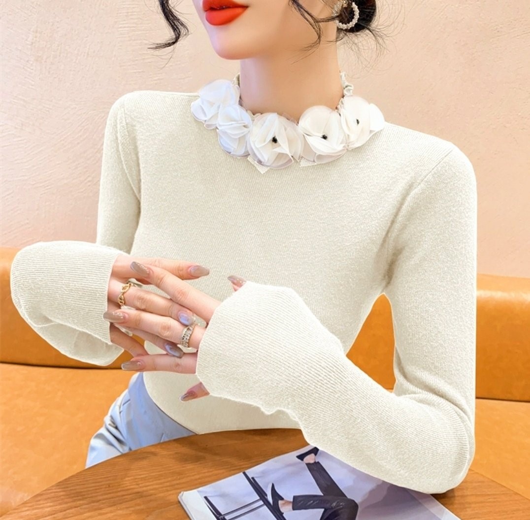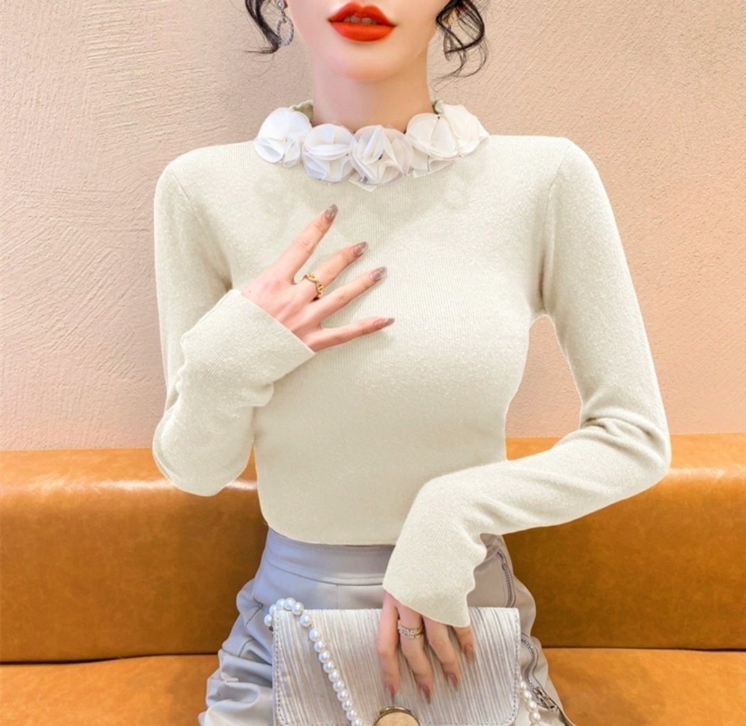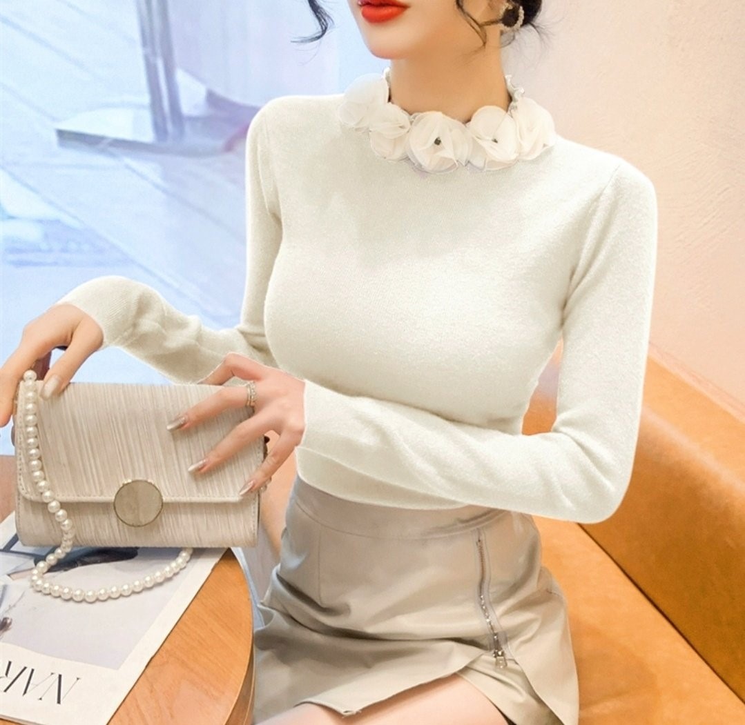 品名:쉬폰로즈넥 슬림니트 ◎※☞颜色:레드, 블랙, 아이보리 ◎※☞尺寸:FREE ◎※☞材质:纯棉 100%