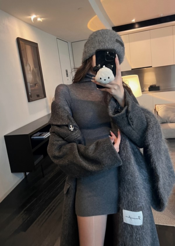 品名:시스루배색 폴라 니트미니원피스 ops ◎※☞颜色:그레이, 블랙, 아이 ◎※☞尺寸:FREE ◎※☞材质:聚酯 100%