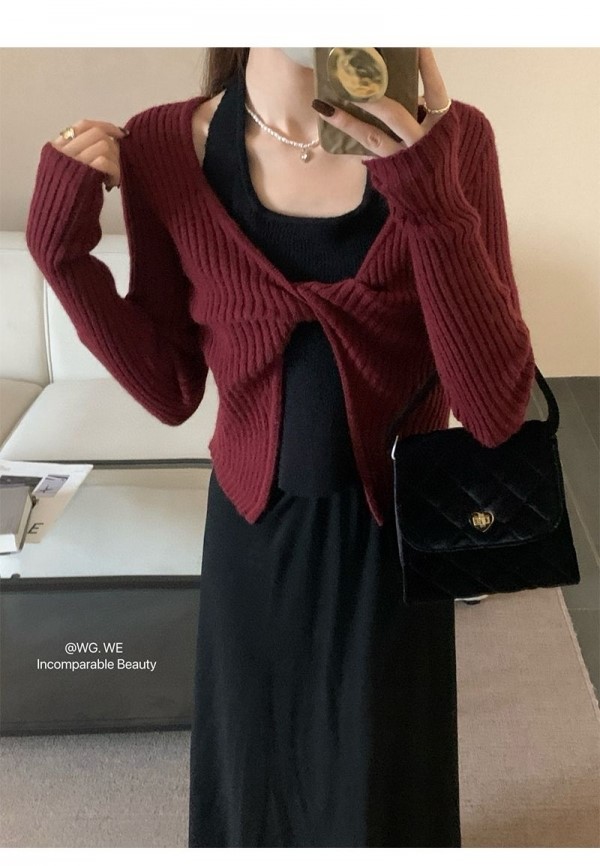 品名:꼬임디테일 레이어드니트 knit ◎※☞颜色:브라운, 와인 ◎※☞尺寸:FREE ◎※☞材质:聚酯 100%