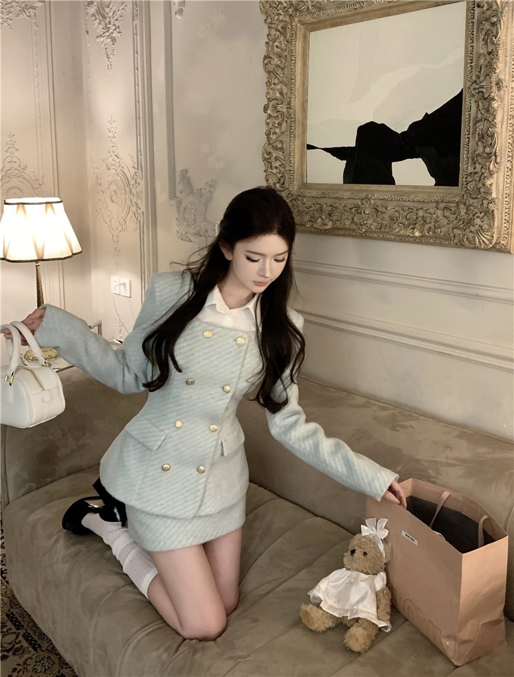 品名:피7267 7268 모직 코트 + 셔츠 스커트 세트 ◎※☞颜色:민트 ◎※☞尺寸:M, S ◎※☞材质:合成皮革 100% 翻译