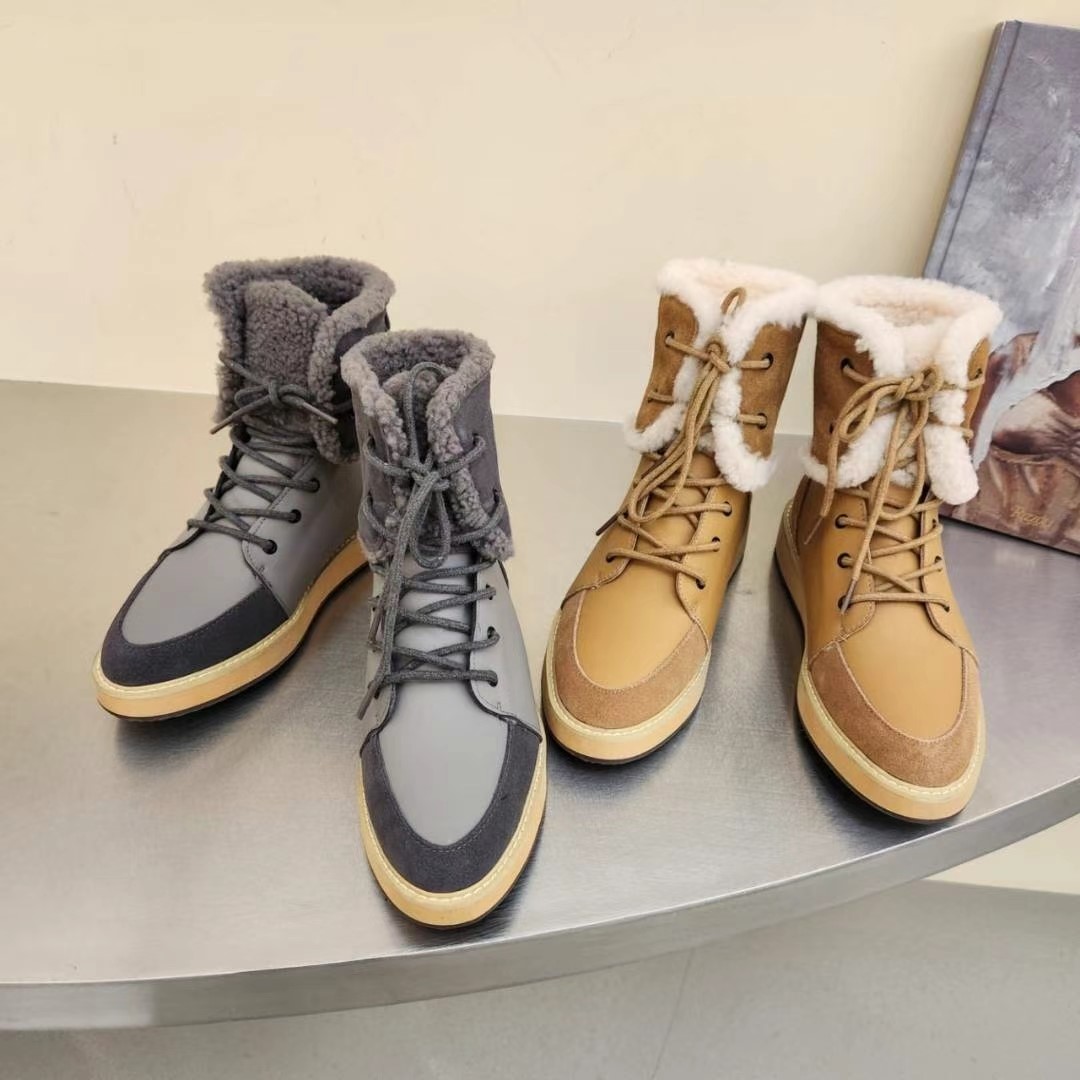 따뜻한 양털 레이스업 워커 부츠에요