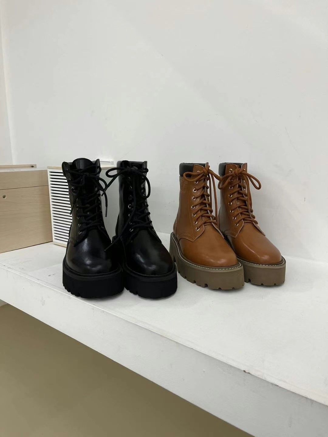 트렌디하고 유니크한 디자인의 소가죽 미들라인 워커에요