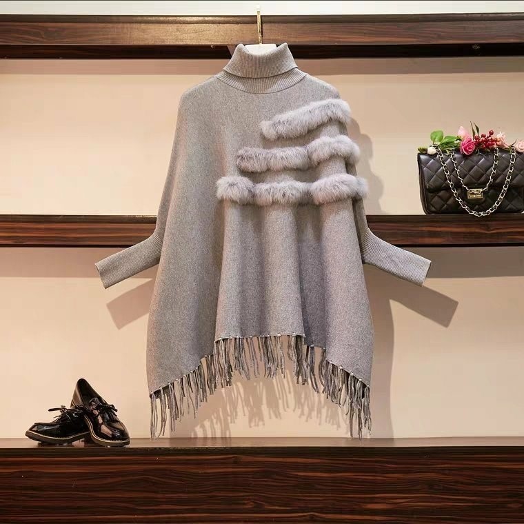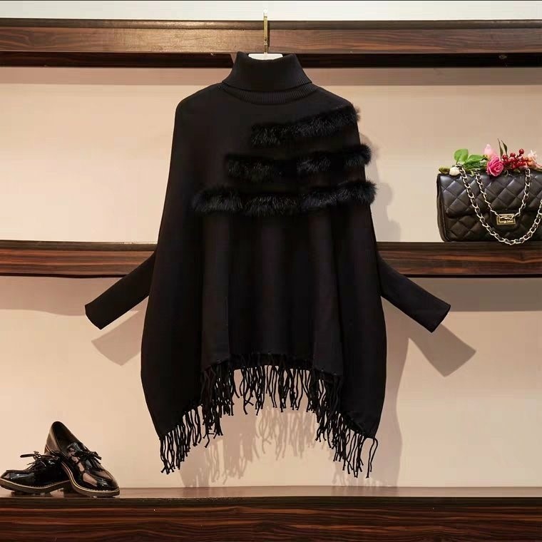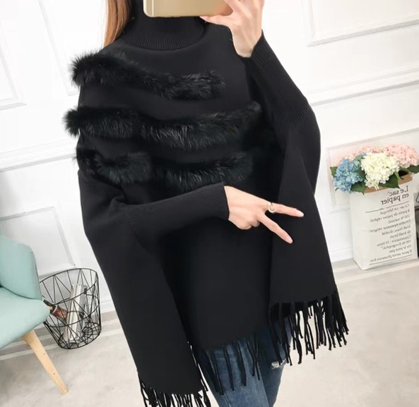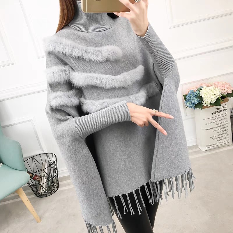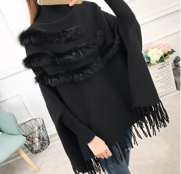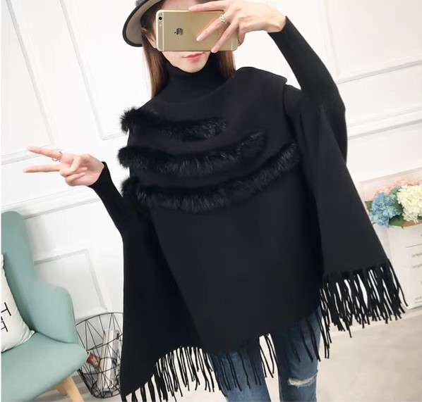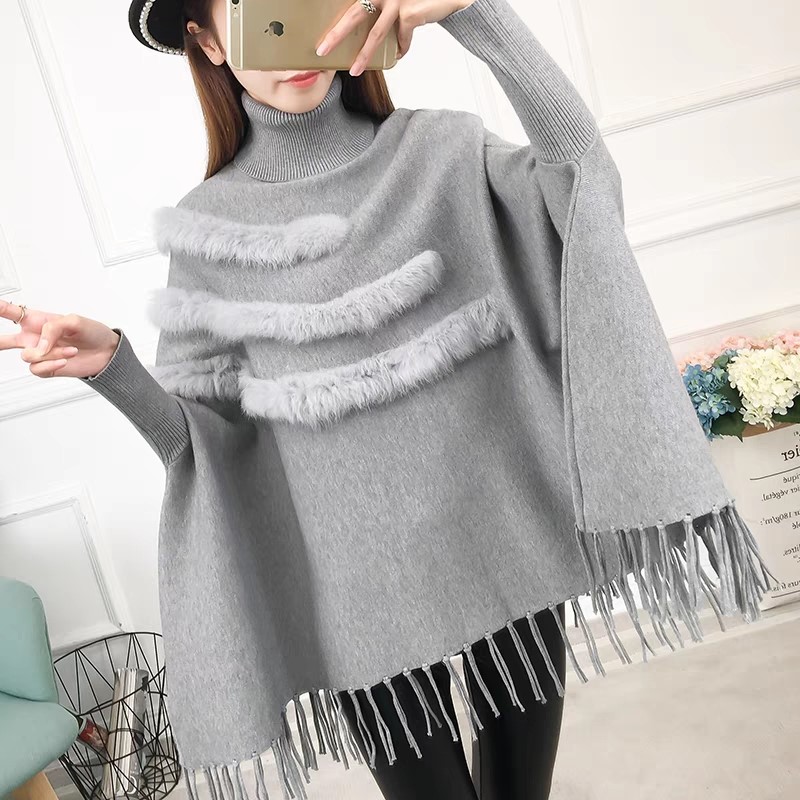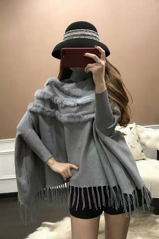 品名:수슬 토끼털 망또 ◎※☞颜色:검정, 베이지, 회색 ◎※☞尺寸:FREE ◎※☞材质:니트 100%