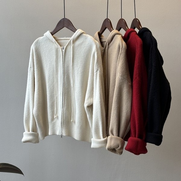 品名:솔리드 니트후드집업가디건 cd ◎※☞颜色:레드, 베이지, 블랙, 아이 ◎※☞尺寸:FREE ◎※☞材质:聚酯 100%