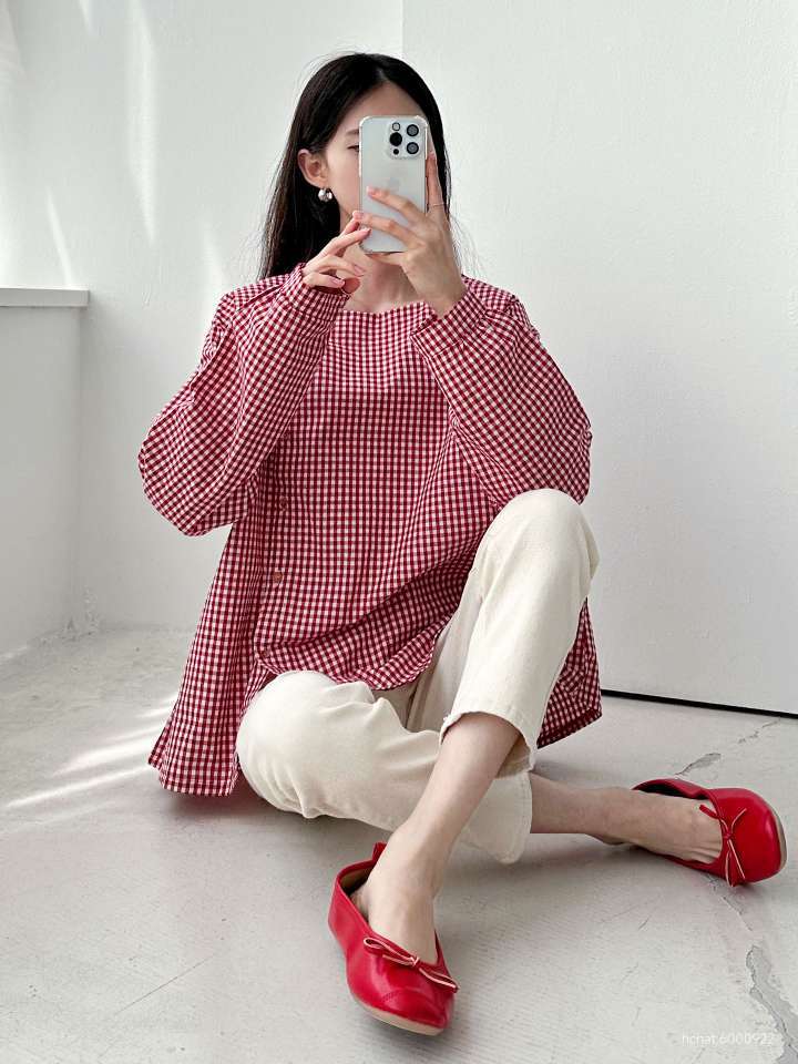 체크 스퀘어 블라우스