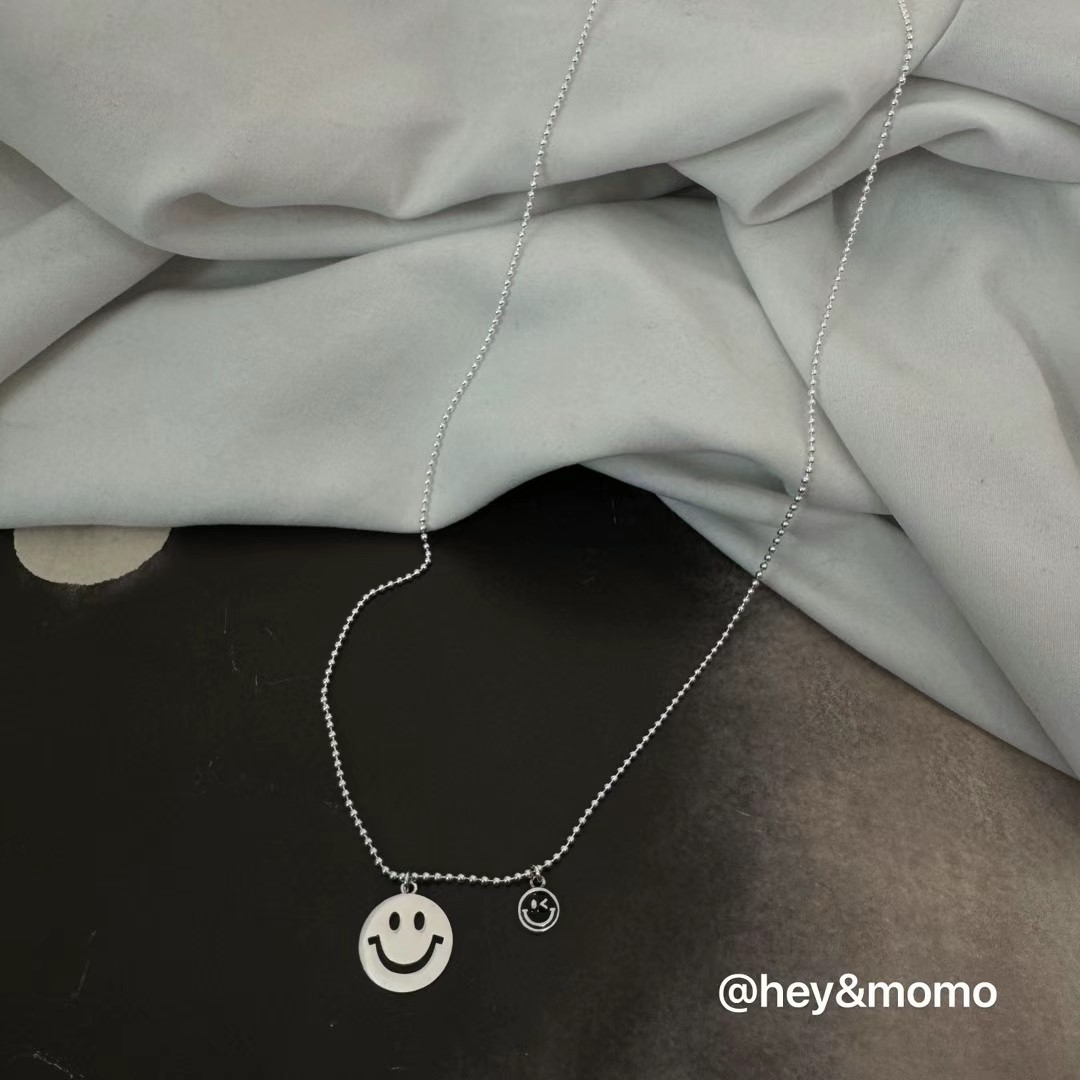 图款 ⚪️925 银 黑釉 镂空笑脸 豆豆链 项链 29000