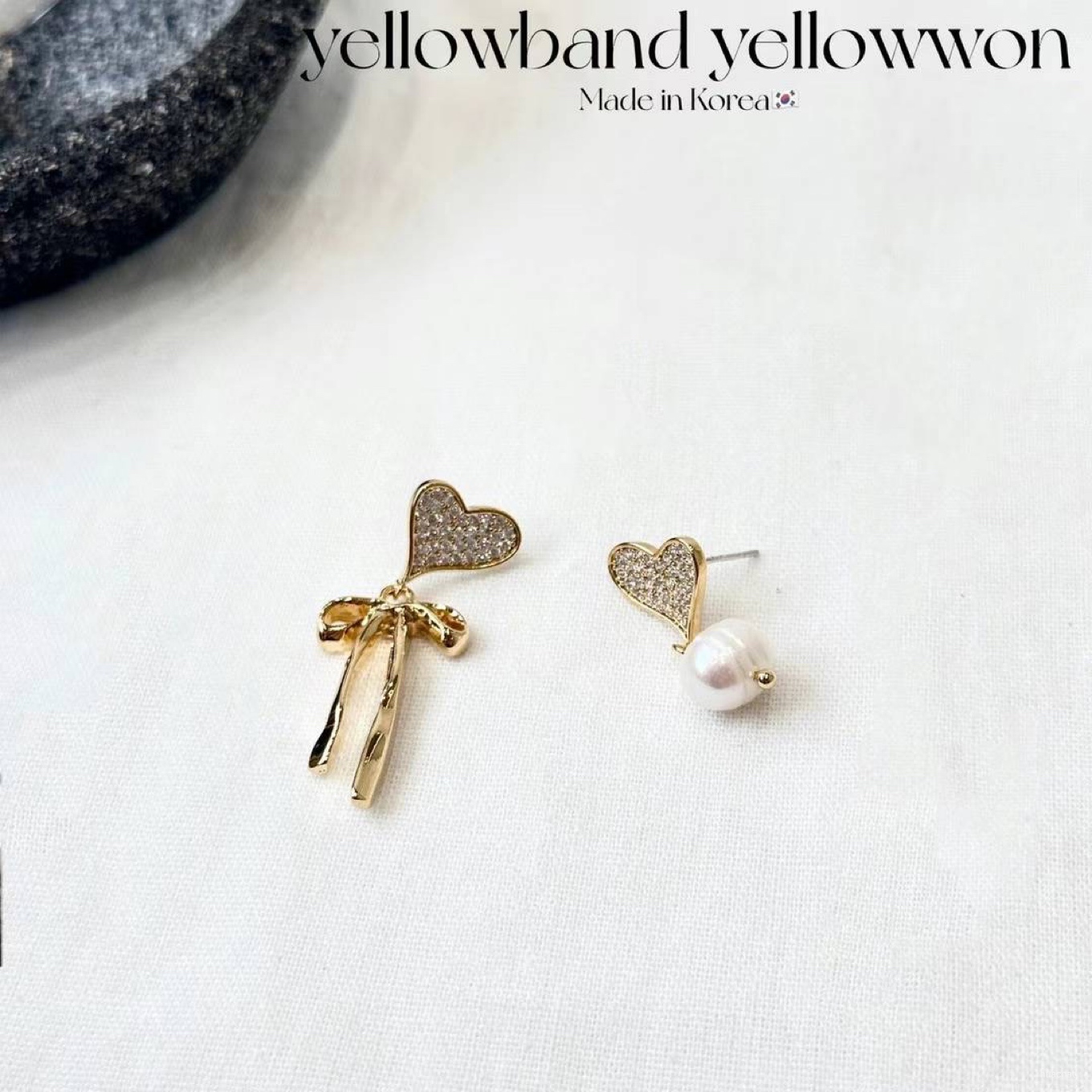 하트리본 진주 은침귀걸이