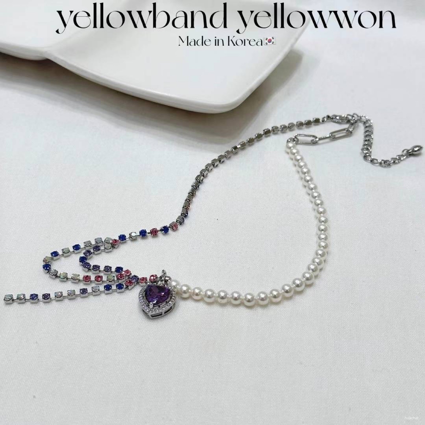 하트 무지개 드롭 진주목걸이