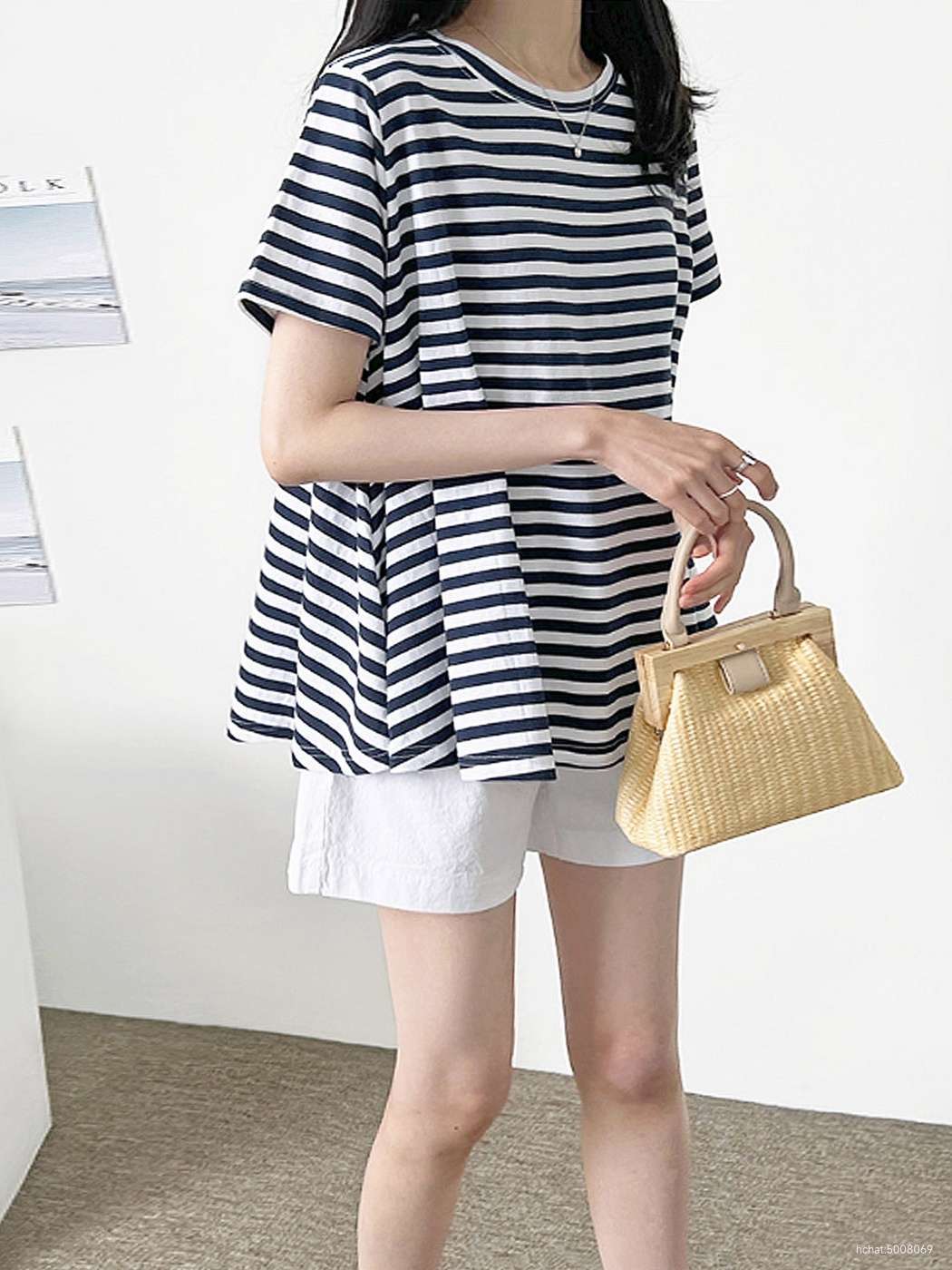 덤블(원단이 비틀어지지 않게 잡는 작업)워싱면으로 제작된 고급스런 A라인패턴의 티예요
