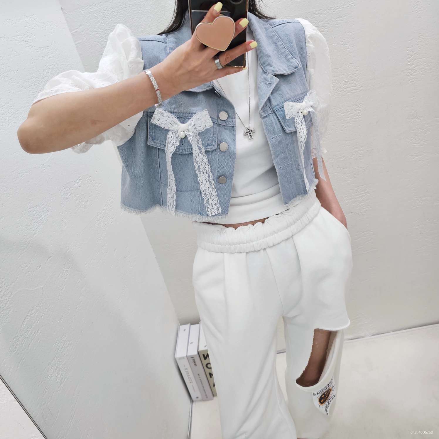 레이스반팔청자켓