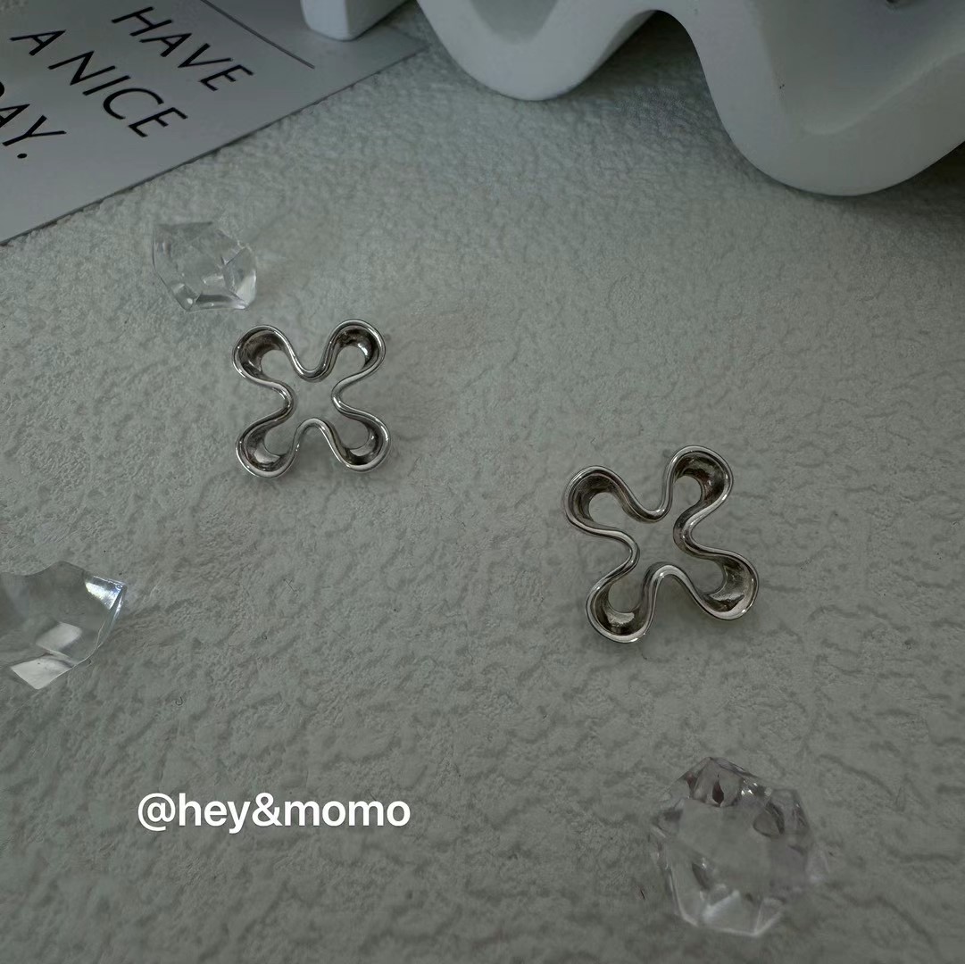 图款 ⚪️925 银 ins风 个性四叶花造型耳钉 18000
