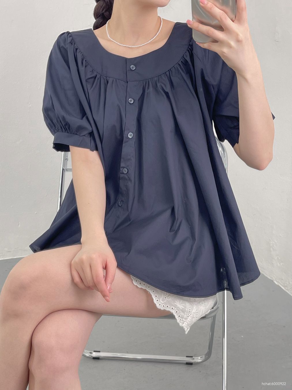 ■ 라운드 셔링 블라우스 셔츠